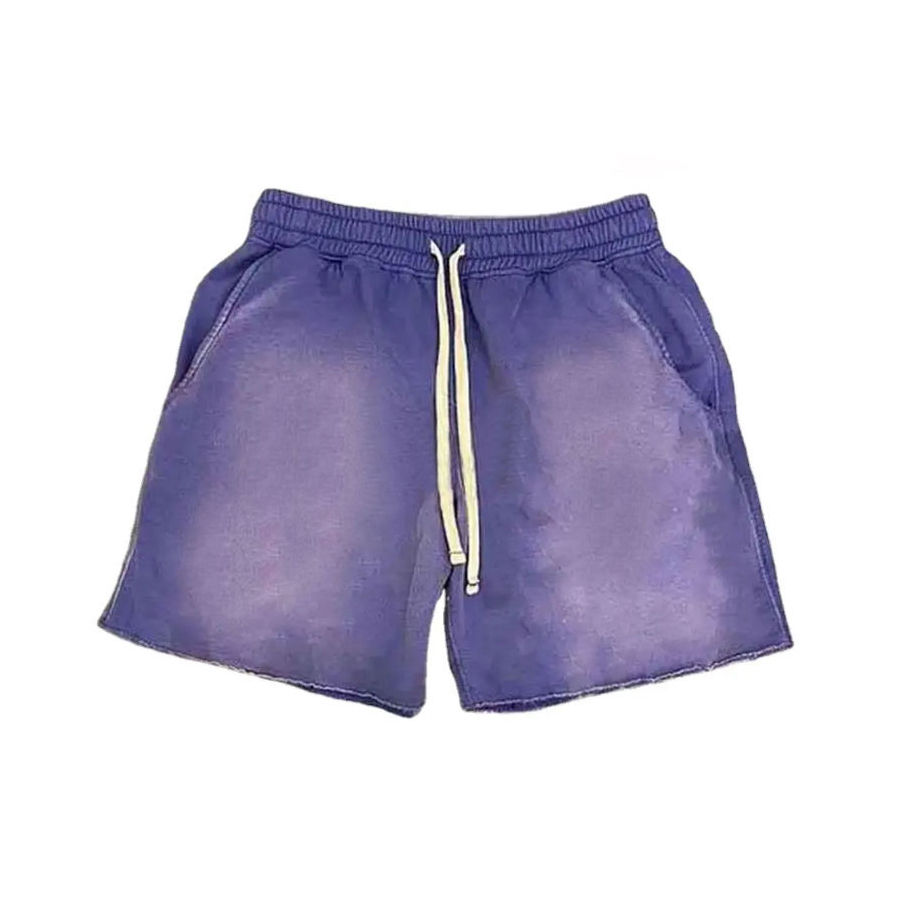 กางเกงขาสั้นเล่นยิมของผู้ชายผ้าฝ้ายเฮฟวี่เวท100% วินเทจสีซีดซีดแบบกรดออกแบบโลโก้ได้ตามต้องการ