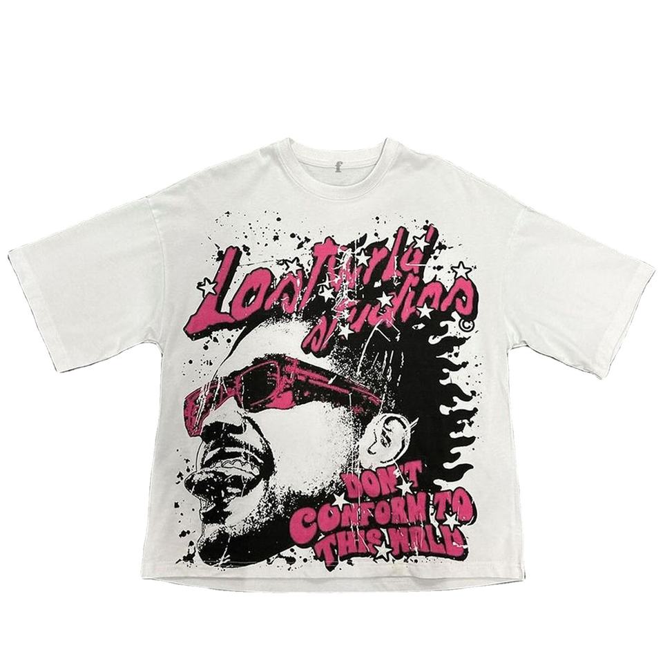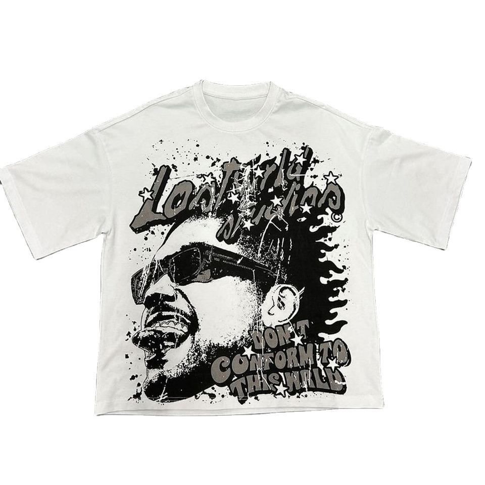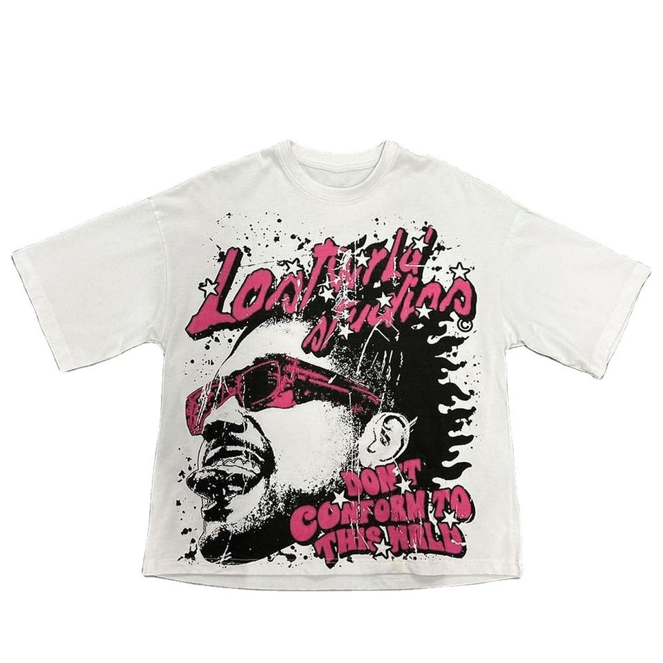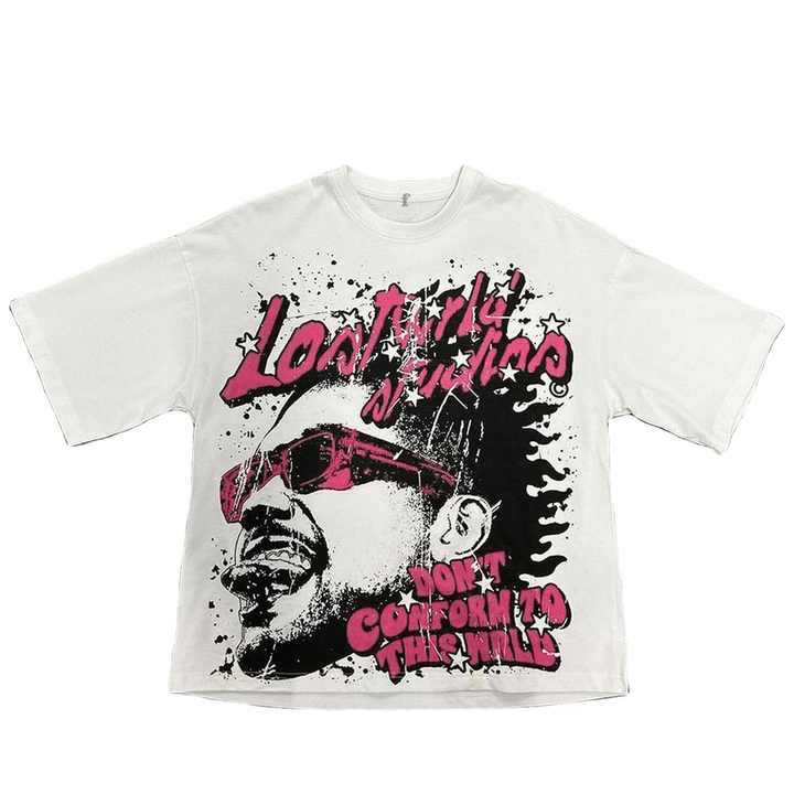 เสื้อยืดผู้ชายแบบกล่องใหญ่ผ้าคอตตอน100% 300GSM พิมพ์ลายกราฟิกเสื้อครอปพอดีตัว