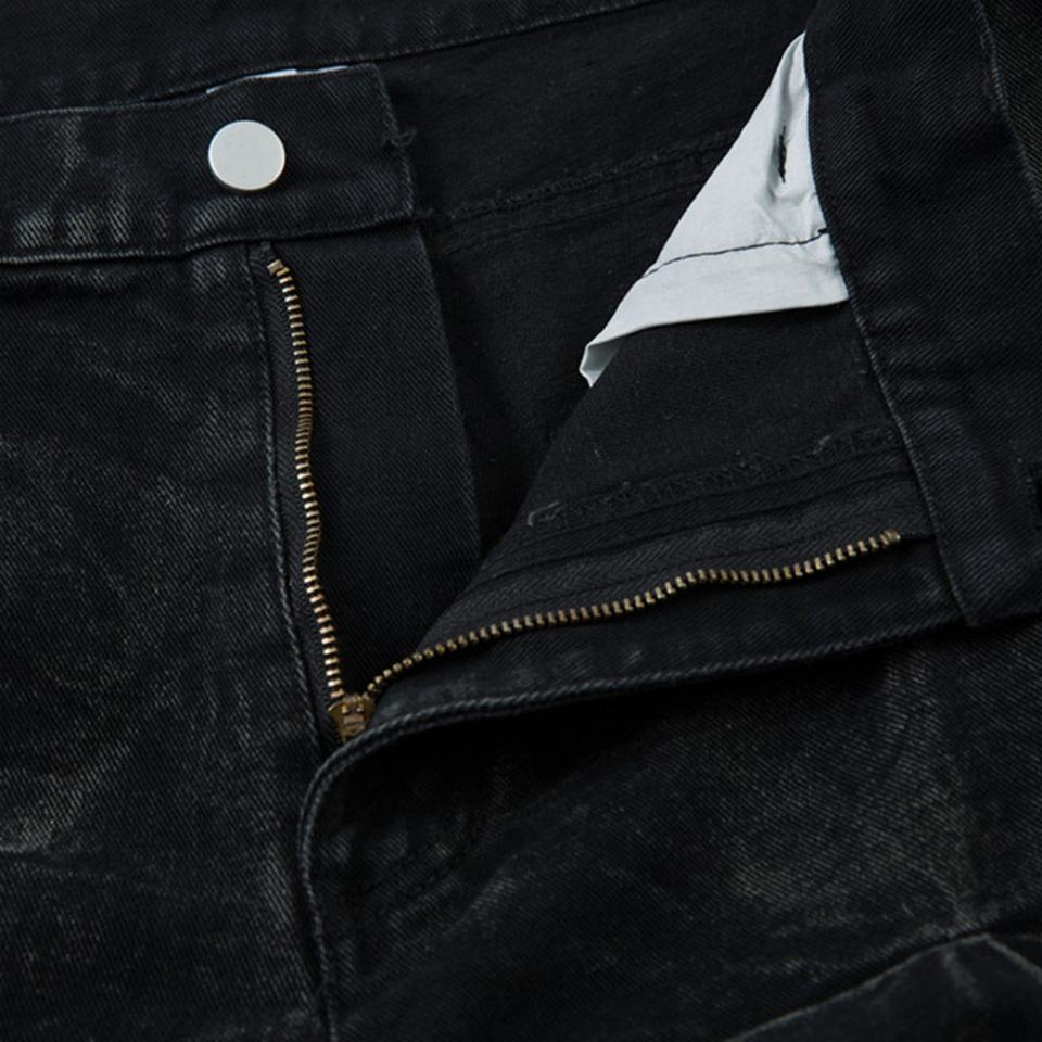 กางเกงยีนส์ผู้ชายทรงสลิมฟิต คุณภาพสูง ผ้าฝ้าย ทรงตรง สไตล์ลำลอง ขาดๆ แบบวินเทจ สไตล์ไฮสตรีท ลุคซักฟอก