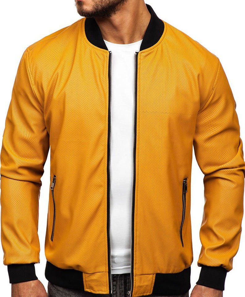 แจ็คเก็ตหนังแฟชั่นคุณภาพสูงสำหรับผู้ชาย สีเหลือง ขายส่ง