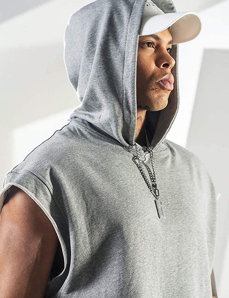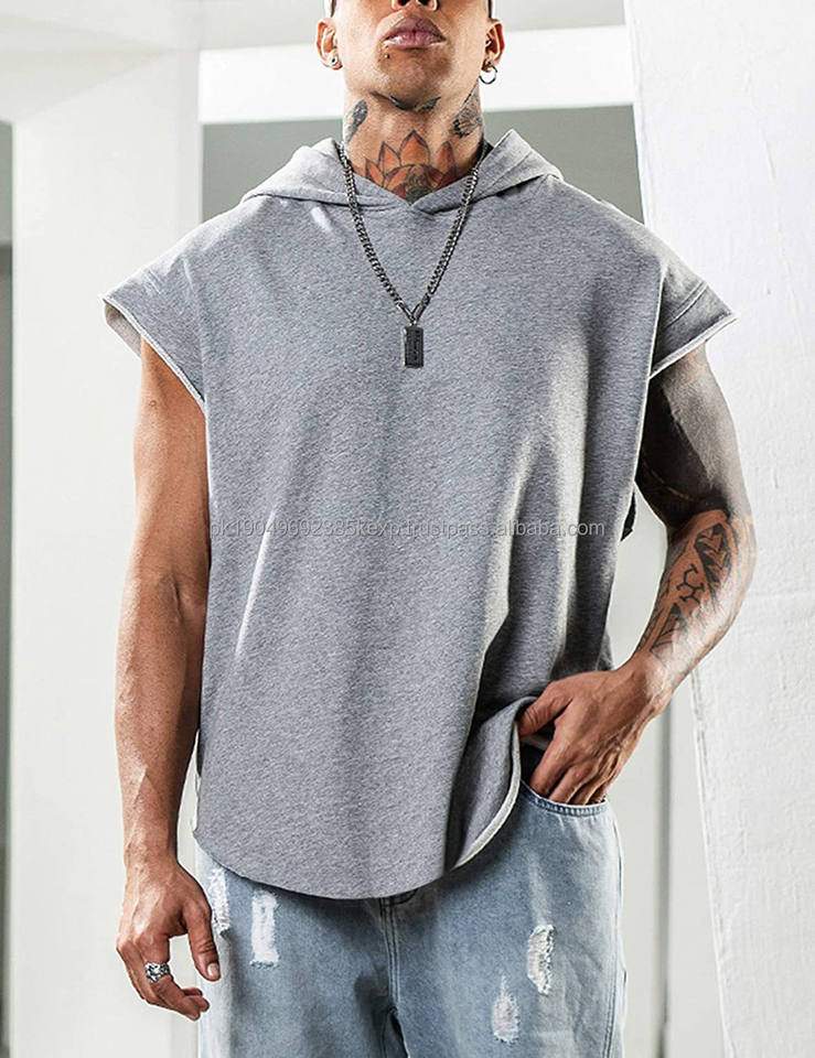 เสื้อฮู้ดดี้ผู้ชายขายส่ง ไซส์ใหญ่ สั่งทำได้ แบบไม่มีแขน สไตล์วินเทจ เสื้อครอป ฮู้ดดี้แบบสวมหัว ผ้าโพลีเอสเตอร์ เสื้อฮู้ดดี้ผู้ชาย