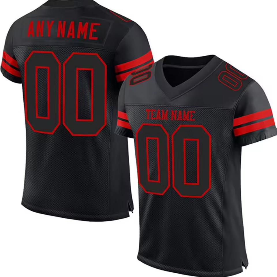 เสื้อเจอร์ซีย์สำหรับผู้ชายเครื่องแบบอเมริกันฟุตบอลเสื้อรักบี้พิมพ์ซับลิเมชันออกแบบได้ตามต้องการ