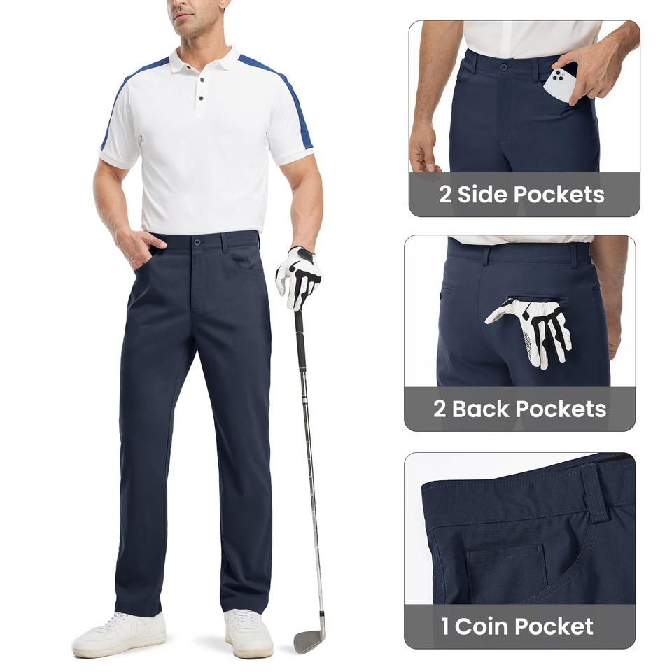 กางเกงกอล์ฟผู้ชายขายส่ง น้ำหนักเบา ขนาดสั่งทำได้ ดีไซน์ยอดนิยม เอวสูง มีกระเป๋าข้าง ผลิตจากโพลีเอสเตอร์ผสมสแปนเด็กซ์