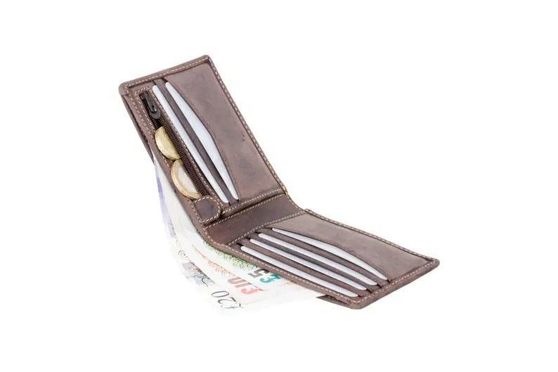 กระเป๋าสตางค์หนังม้าบ้าพับได้หรูหราสำหรับผู้ชายกระเป๋าสตางค์แบบสั้นสไตล์วินเทจ-ดูกระเป๋าเงินแบบบางเปิดปิดได้แบบ LW-0140ซับในหนังวัวขายส่ง
