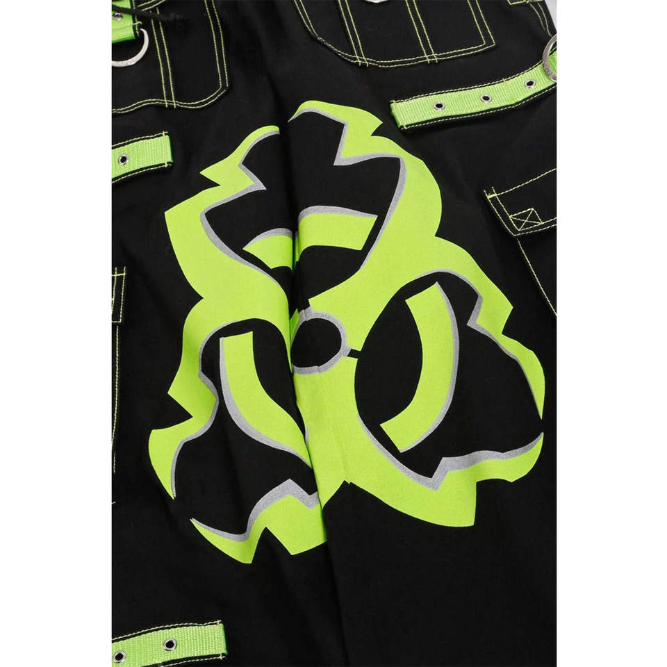 กางเกงขายส่งผู้ชายลาย Mega Biohazard สไตล์โกธิค สีดำ/เขียวมะนาว กระเป๋าลึกปรับได้