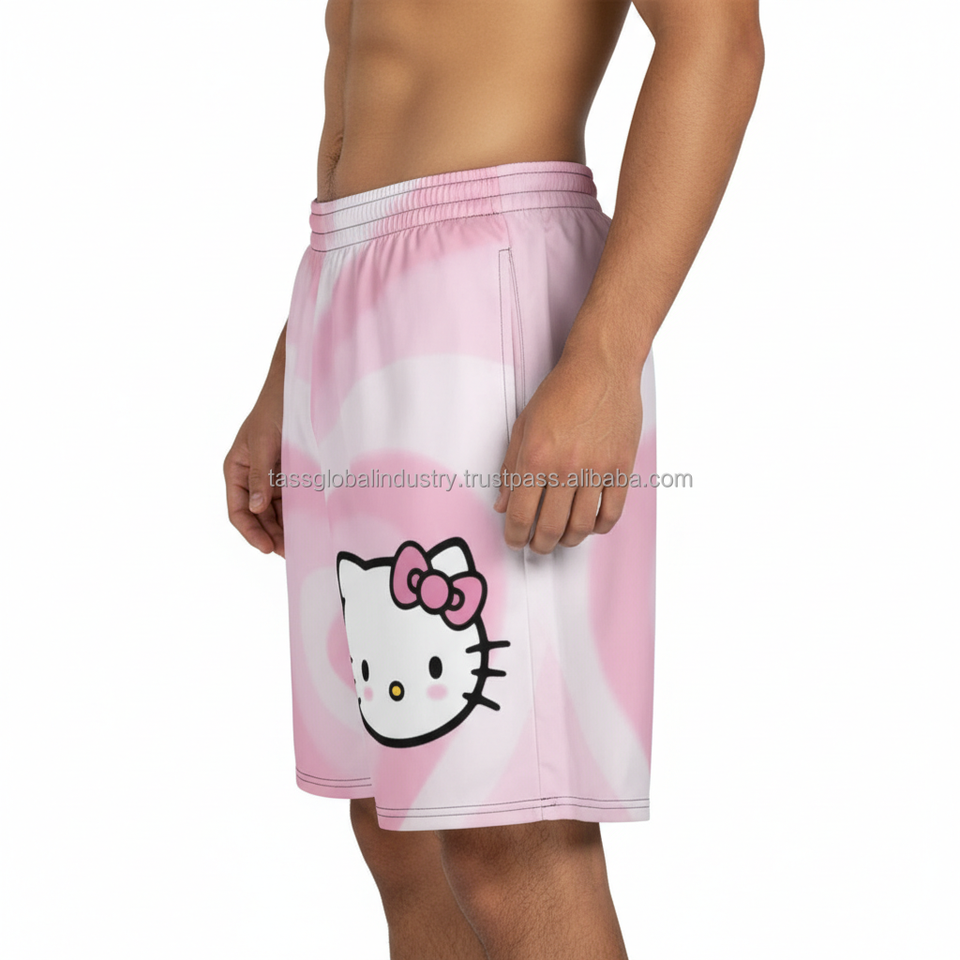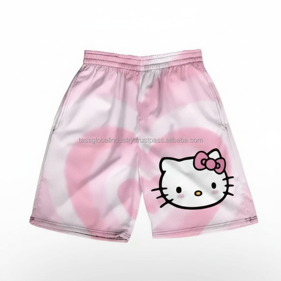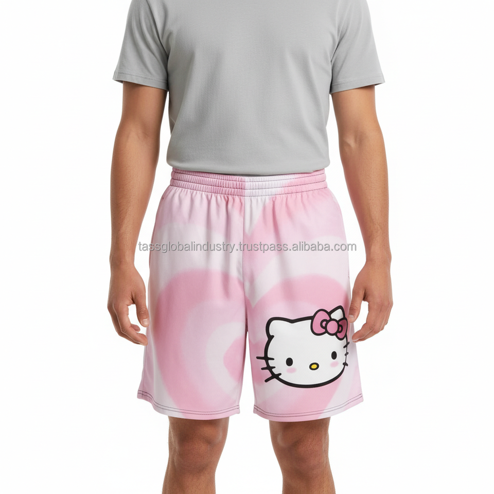 Wholesale Men's Mesh Shorts Lightweight OEM Cute Cartoon Graphic Pink Heart Print 2026 Summer Casual Shorts
