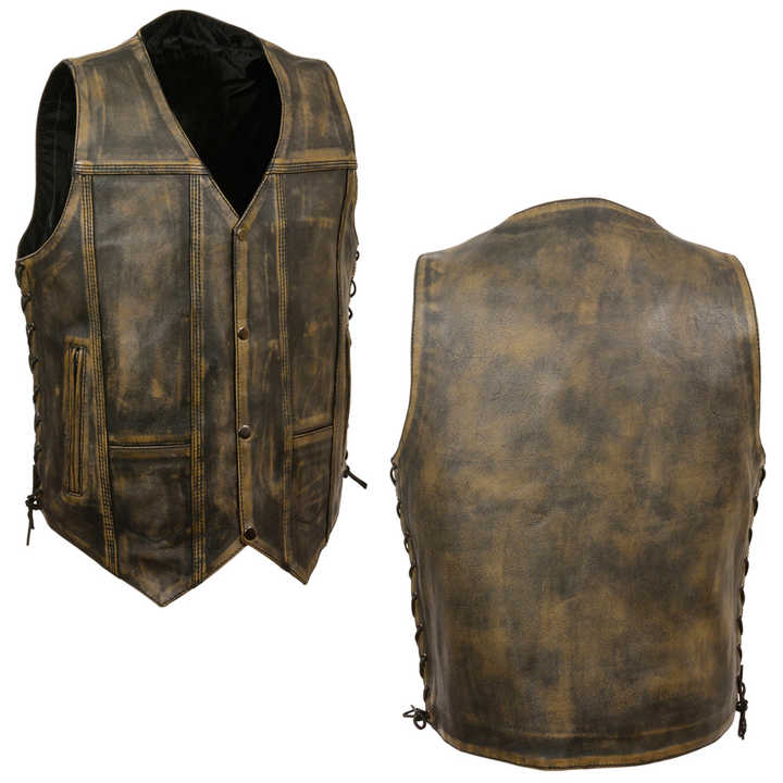 เสื้อกั๊กสำหรับนักขี่มอเตอร์ไซค์หนังแท้สำหรับผู้ชายเสื้อกั๊กหนังคลาสสิกปักลายตามสั่ง