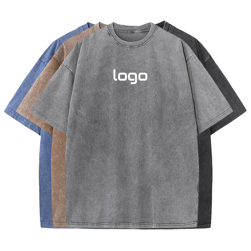 เสื้อยืดโอเวอร์ไซส์วินเทจผู้ชายขายส่ง 230gsm ผ้าฝ้าย 100% ล้างสีแบบแอซิด รับสกรีนโลโก้ เสื้อเปล่า