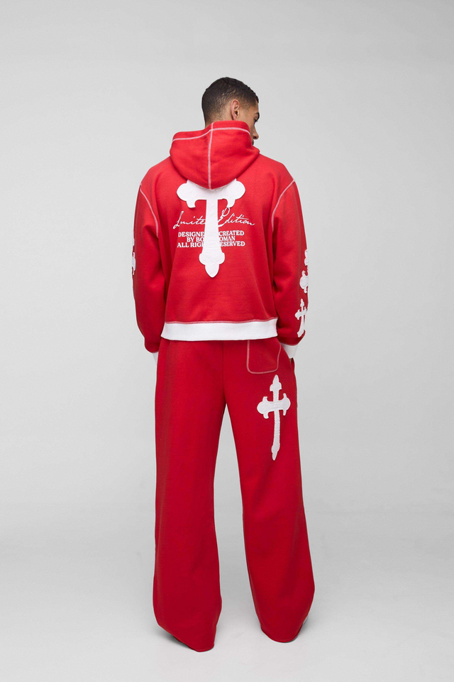 ชุดวอร์มผู้ชายแบบมีฮู้ด รุ่นลิมิเต็ดอิดิชั่น ตกแต่งลายกากบาท ทรงบ็อกซี่ สำหรับฤดูหนาว สไตล์ลำลอง สีพื้น คุณภาพสูง ขายส่ง