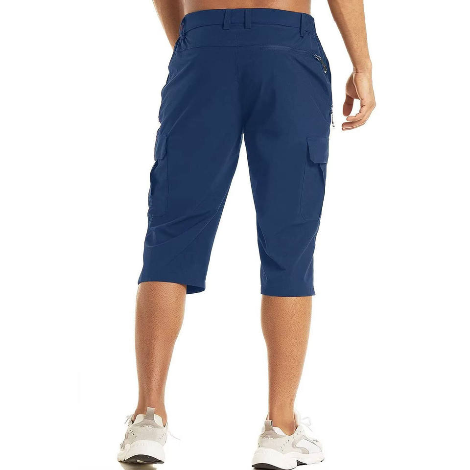 กางเกงกีฬาผู้ชายผ้าฝ้ายลำลองแบบถักระบายอากาศมีกระเป๋าซิปสีทึบกางเกงวิ่งกันน้ำ