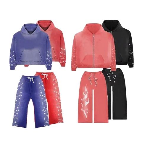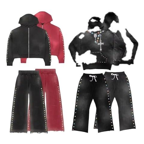 เสื้อวอร์มทรงหลวมมีฮู้ดแบบมีซิปสำหรับผู้ชายกางเกงวอร์มทรงวินเทจชุดวอร์ม20026