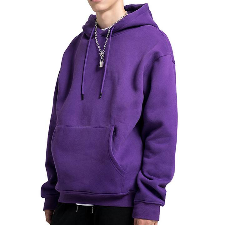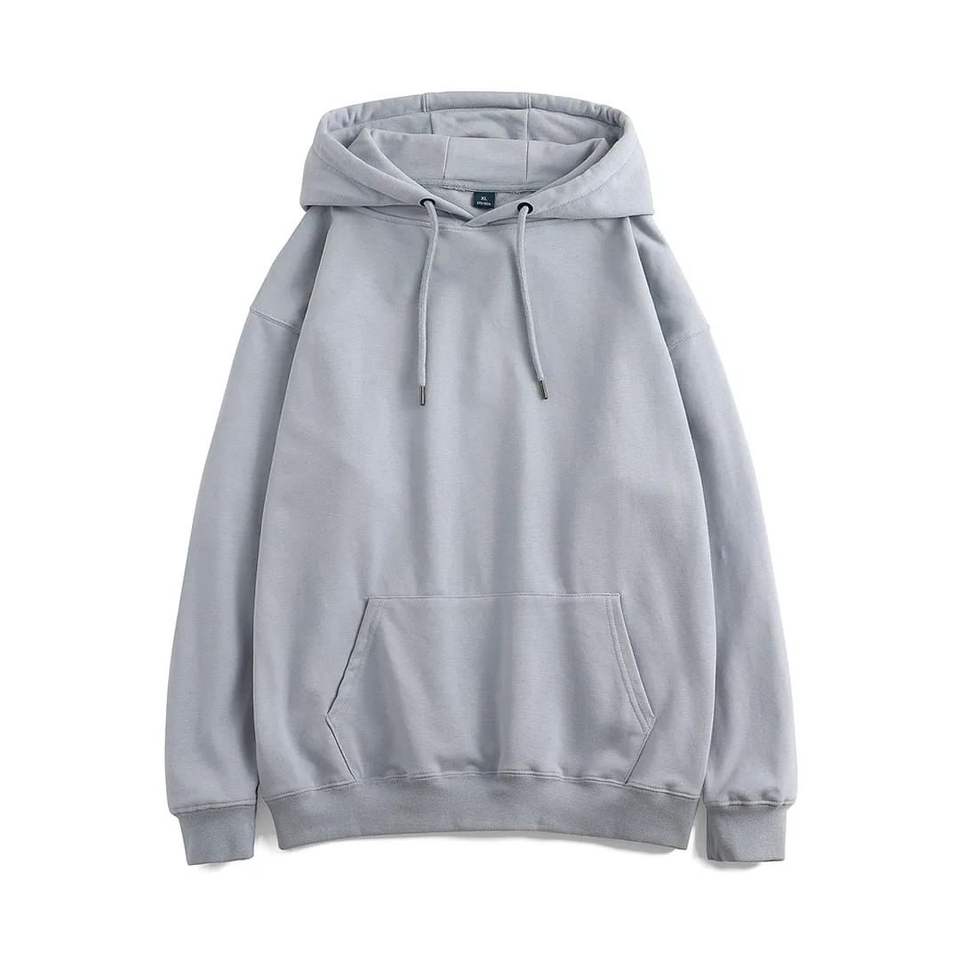 เสื้อฮู้ดผู้ชายผ้าฝ้ายสีทึบเสื้อสเวตเตอร์แบบสวมหัวทรงหลวมและระบายอากาศได้ดีสำหรับฤดูหนาว
