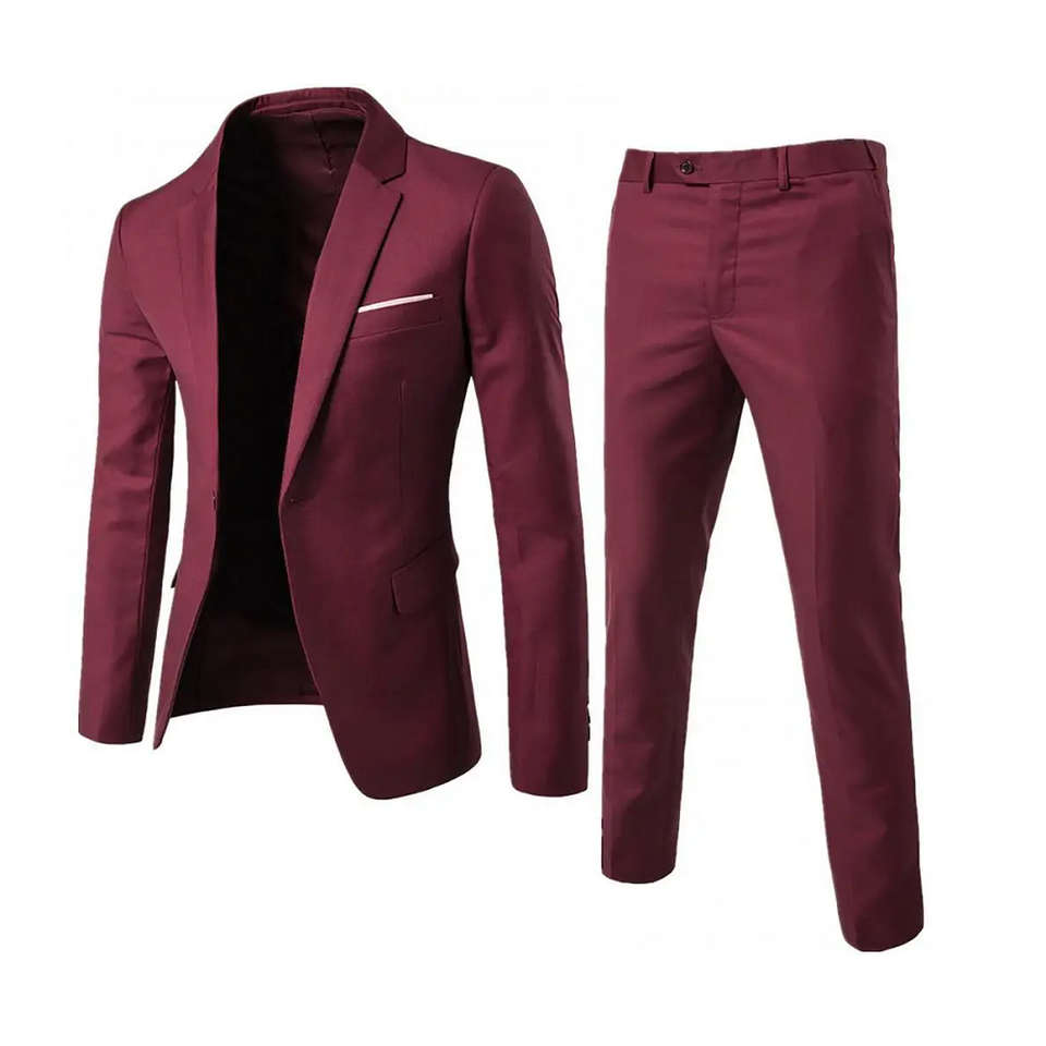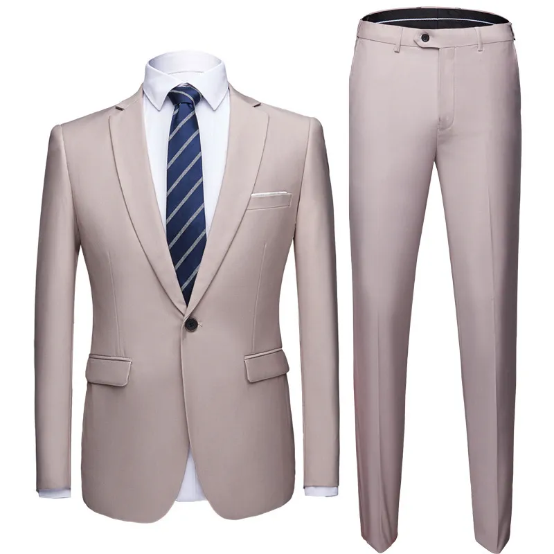 เสื้อกั๊กงานพรอมทางการของผู้ชายชุดสูท2ชิ้นแบบเข้ารูปกระดุมแถวเดียวสูทแฟชั่นชุดแต่งงานแบบนักธุรกิจ