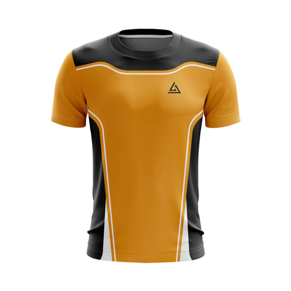เสื้อยืดกีฬาผู้ชายแขนสั้นผ้าโพลีเอสเตอร์100% ลายพื้น