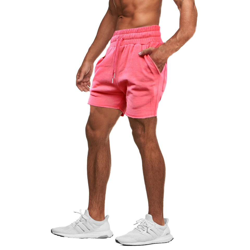กางเกงขาสั้นผู้ชายแบบสปอร์ตสีพื้น ผ้าซับเหงื่อ ระบายอากาศได้ดี ผ้าผสมโพลีเอสเตอร์/คอตตอน ยับยาก เป็นมิตรกับสิ่งแวดล้อม ขายส่ง