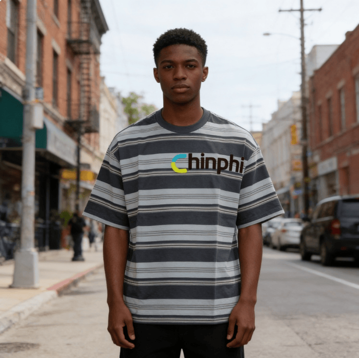 เสื้อยืดลำลองผู้ชายสไตล์สตรีท ผ้าฝ้าย 100% 280 กรัม ลายทาง พิมพ์โลโก้ได้ตามสั่ง ระบายอากาศดี เหมาะสำหรับฤดูร้อน ขายส่ง