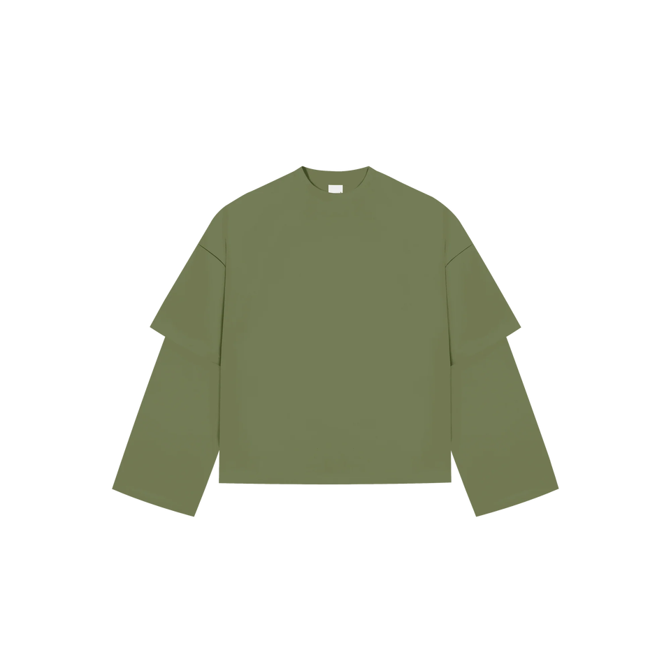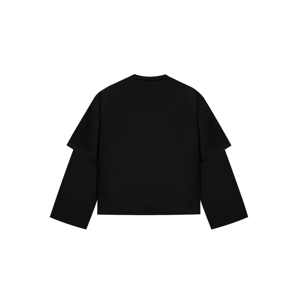 เสื้อยืดแขนยาวผู้ชายสไตล์สตรีทแวร์ลำลองสองชั้น ผ้าฟลีซคอตตอน 100% หนา 220 GSM พิมพ์ลายด้านหน้า แบบสั่งทำได้