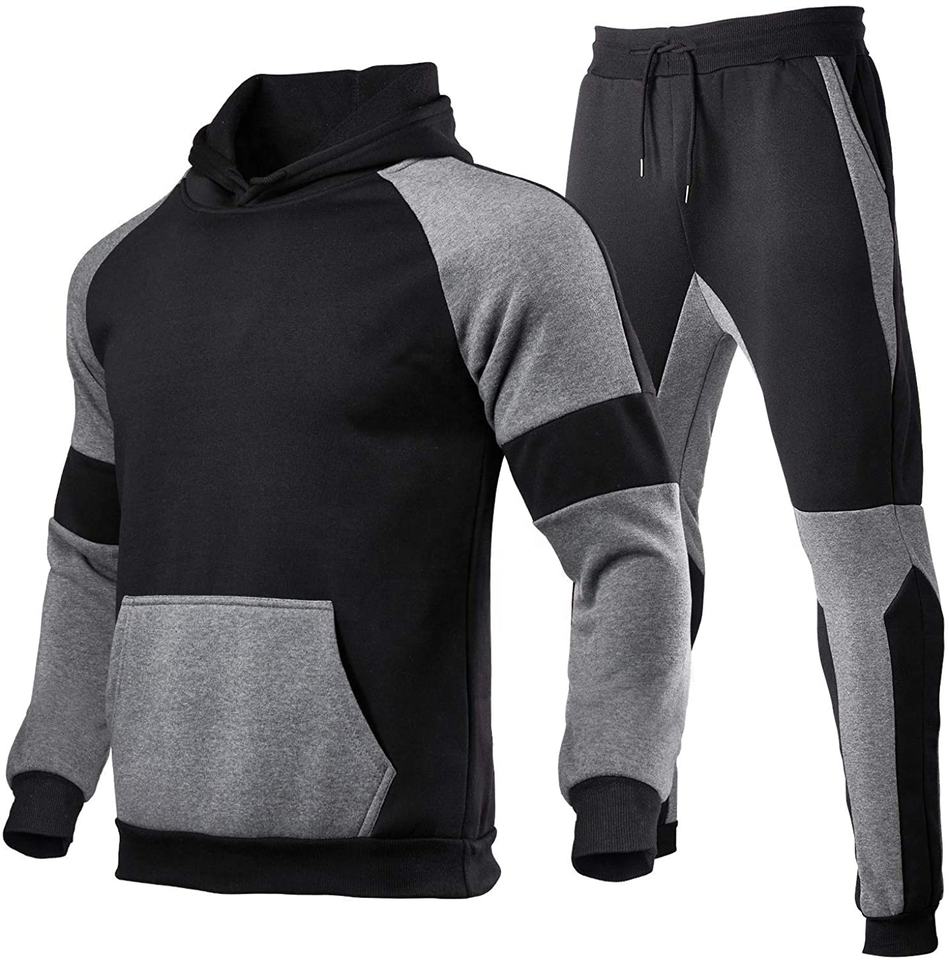 ชุดกีฬาลำลองมีฮู้ดสำหรับผู้ชาย,ชุดวอร์มชุดวิ่งสีเข้าชุดแนวสตรีท