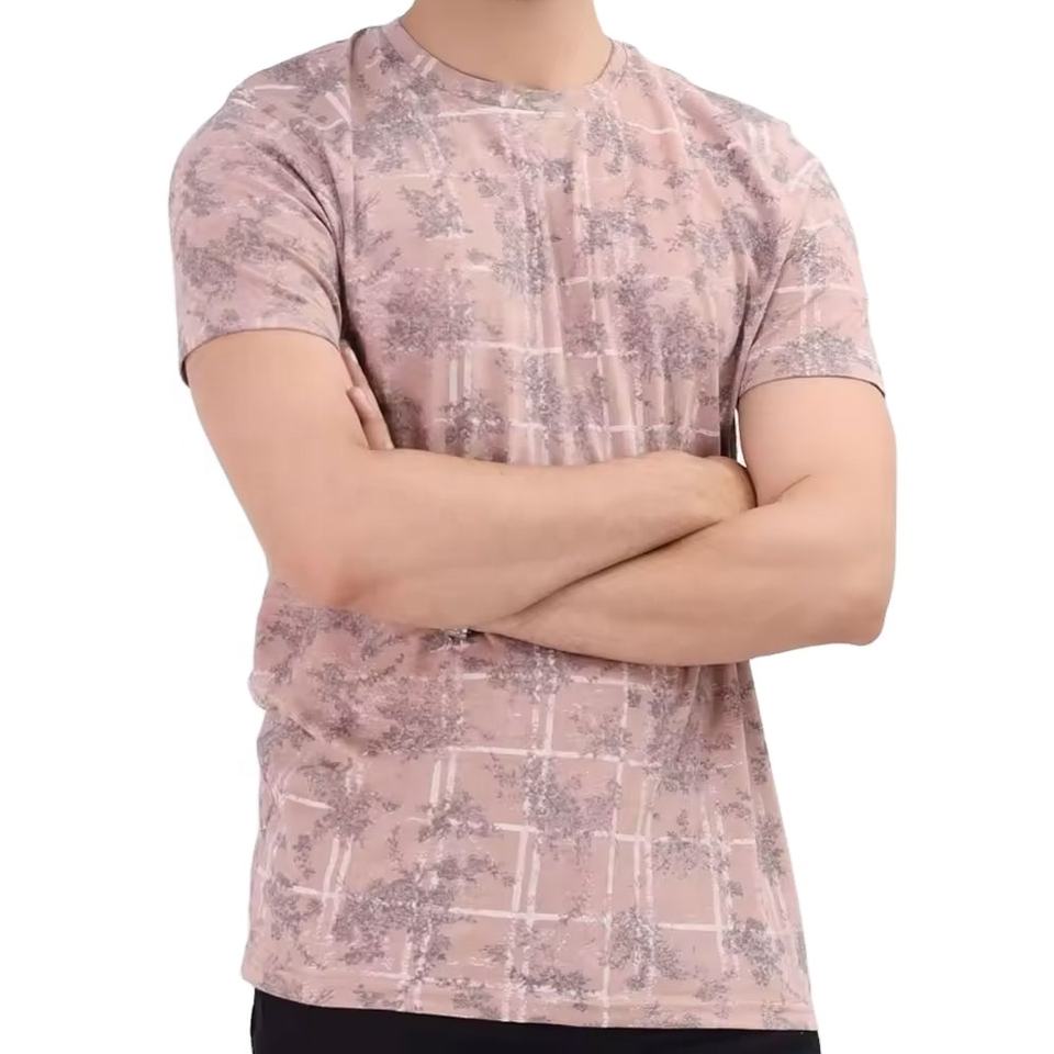 เสื้อยืดผู้ชายพิมพ์ซับลิเมชันผ้าฝ้ายโพลีเอสเตอร์-วัสดุระบายอากาศแขนสั้น