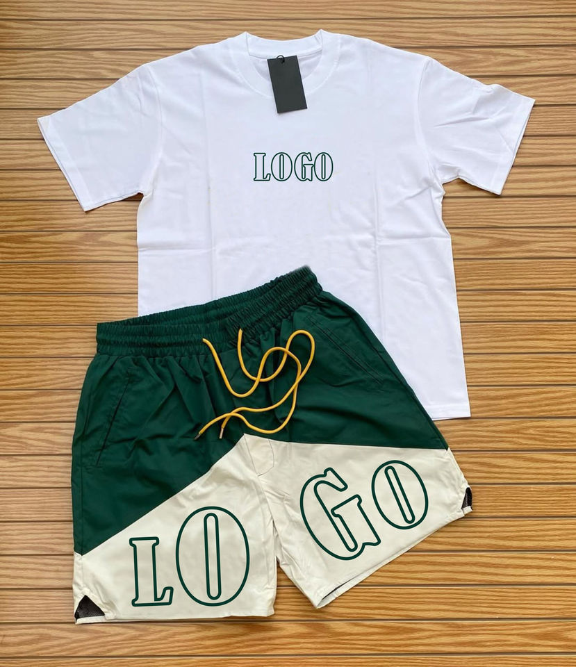 ชุดเสื้อผ้าผู้ชายฤดูร้อนปี 2025 ขายส่ง ชุด 2 ชิ้น ผ้าฝ้าย 100% แห้งเร็ว เสื้อและกางเกงขาสั้นผู้ชาย ชุดเสื้อผ้าสองชิ้น