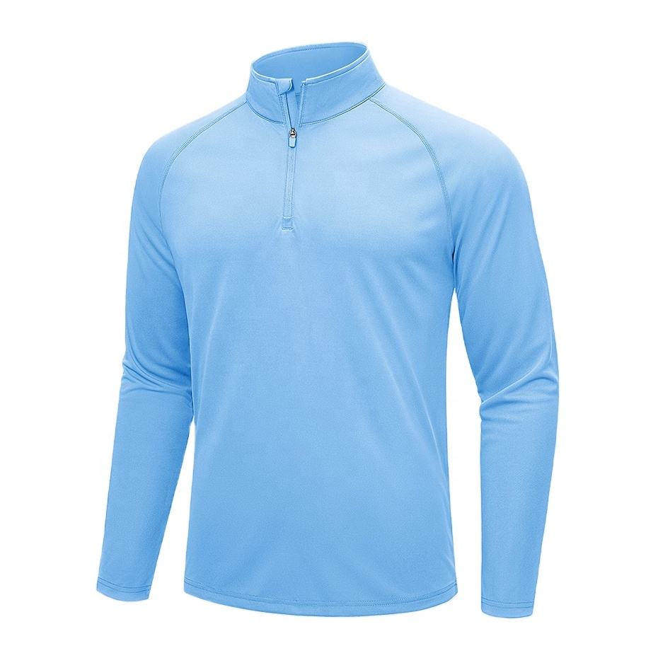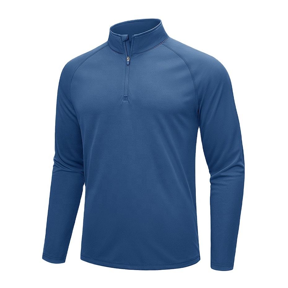 เสื้อยืดผู้ชายแบบสวมศีรษะมีซิป1/4เสื้อยืดแขนยาวผ้าโพลีเอสเตอร์ระบายอากาศแห้งเร็วเนื้อผ้าโพลีเอสเตอร์100% สำหรับใส่กลางแจ้ง