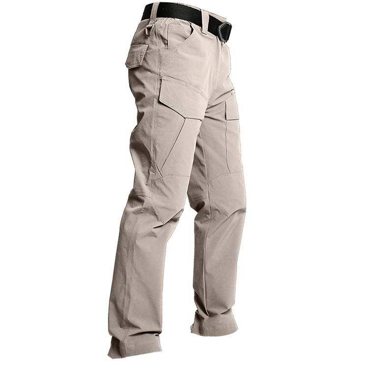 กางเกงคาร์โก้ผู้ชายแบบมีกระเป๋าหลายช่องเอวตรงสไตล์สตรีทแวร์แบบไม่ทอ