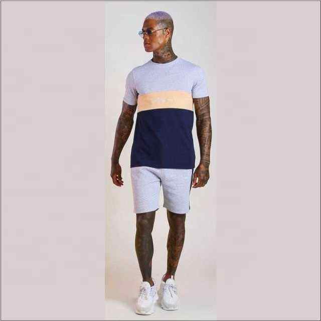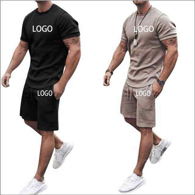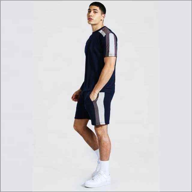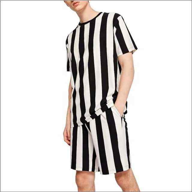 ชุดเสื้อผ้าคู่สำหรับผู้ชายเสื้อยืดและกางเกงขาสั้นชุดเสื้อผ้าคู่ผ้าฝ้าย100% ลายทางออกแบบได้ตามต้องการ