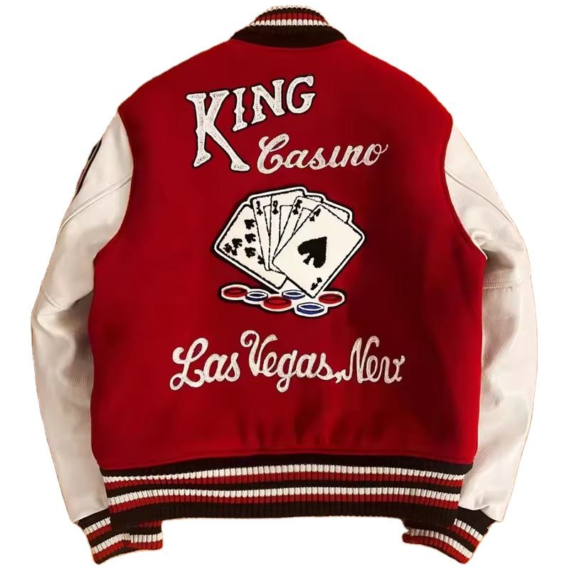 แจ็คเก็ตวาร์ซิตี้ผู้ชายขายส่ง หนังแท้ ผ้าขนสัตว์ คอตั้ง สไตล์ฮิปฮอป กันน้ำ กันลม ปรับแต่งได้