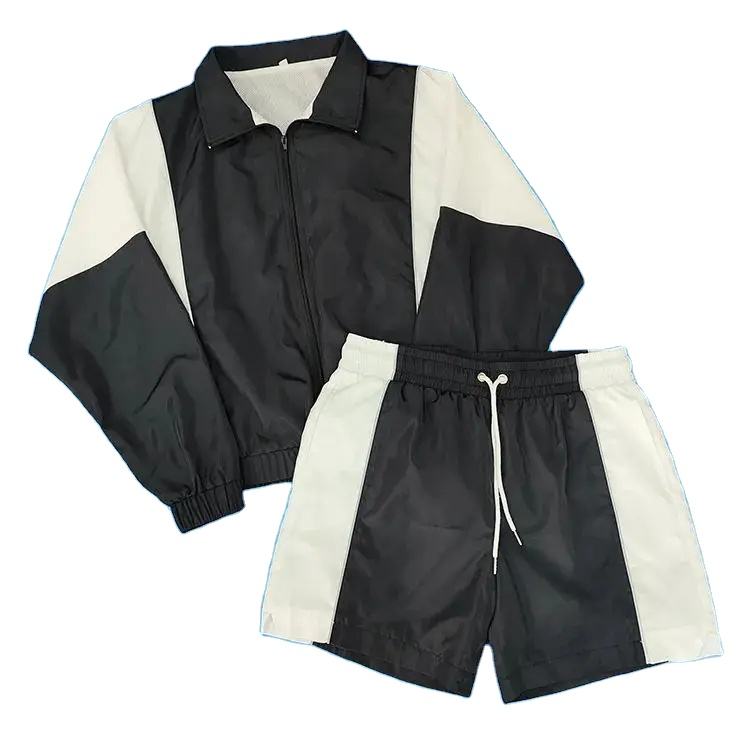 ชุดเซ็ตเสื้อแจ็คเก็ตกันลมและกางเกงขาสั้นผู้ชาย ขายส่ง ผ้าไนลอน น้ำหนักเบา กันน้ำ สวมใส่สบาย ไซส์ผู้ชาย