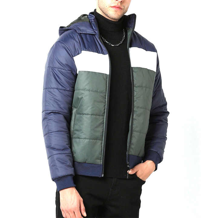 เสื้อแจ็คเก็ตพัฟเฟอร์ผู้ชายแบบสบายๆ สไตล์บับเบิ้ลสำหรับฤดูหนาว มีฮู้ด ปิดด้วยซิป บรรจุใยโพลีเอสเตอร์ 100% ระบายอากาศได้ดี ขายส่ง