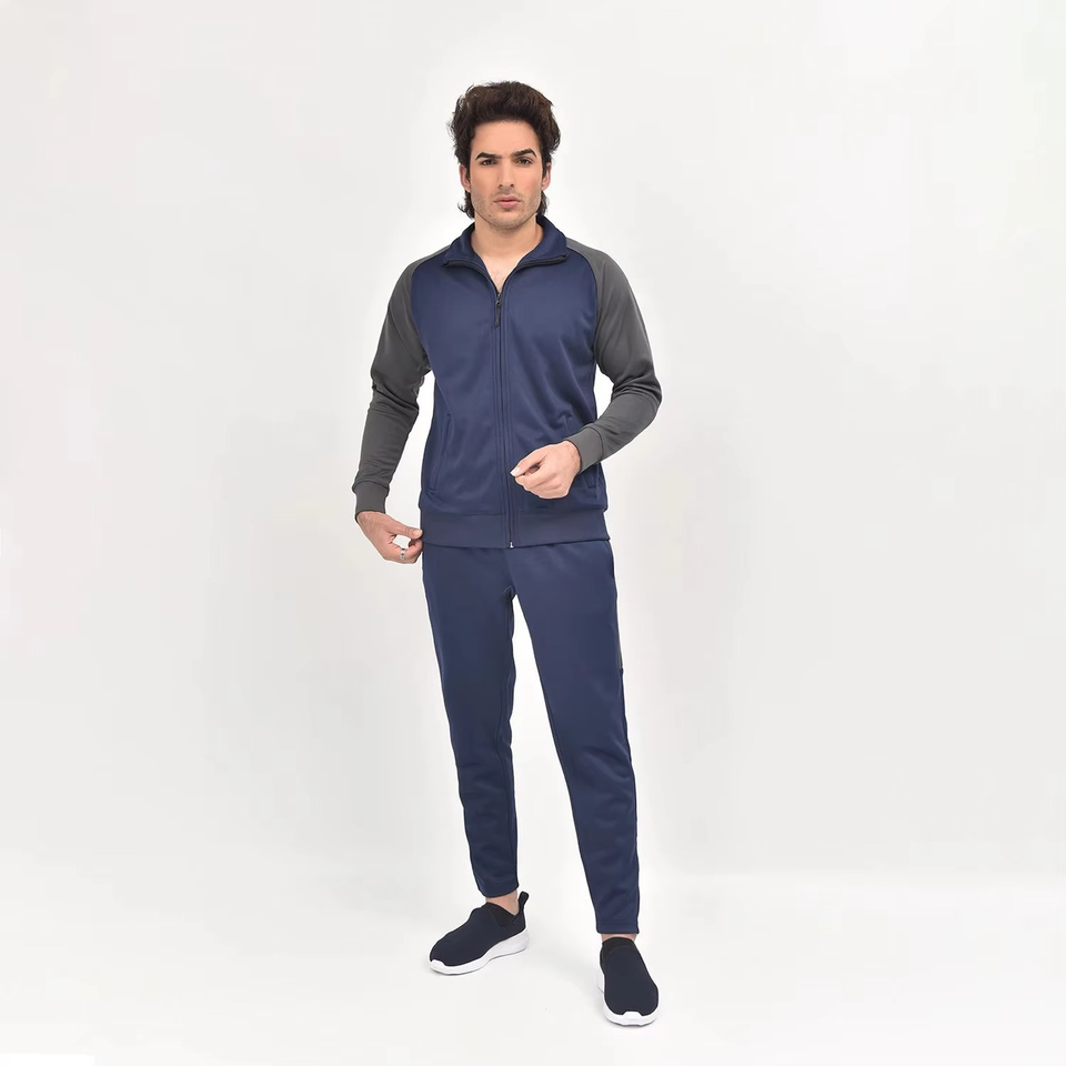 ชุดวอร์มกีฬาฤดูหนาวผู้ชายแบบขายส่ง ชุดฮู้ด 2 ชิ้นแบบมีซิป ผ้าฟลีซเทคโนโลยี ระบายอากาศได้ดี ชุดวิ่งออกกำลังกาย แจ็คเก็ตปักโลโก้ได้
