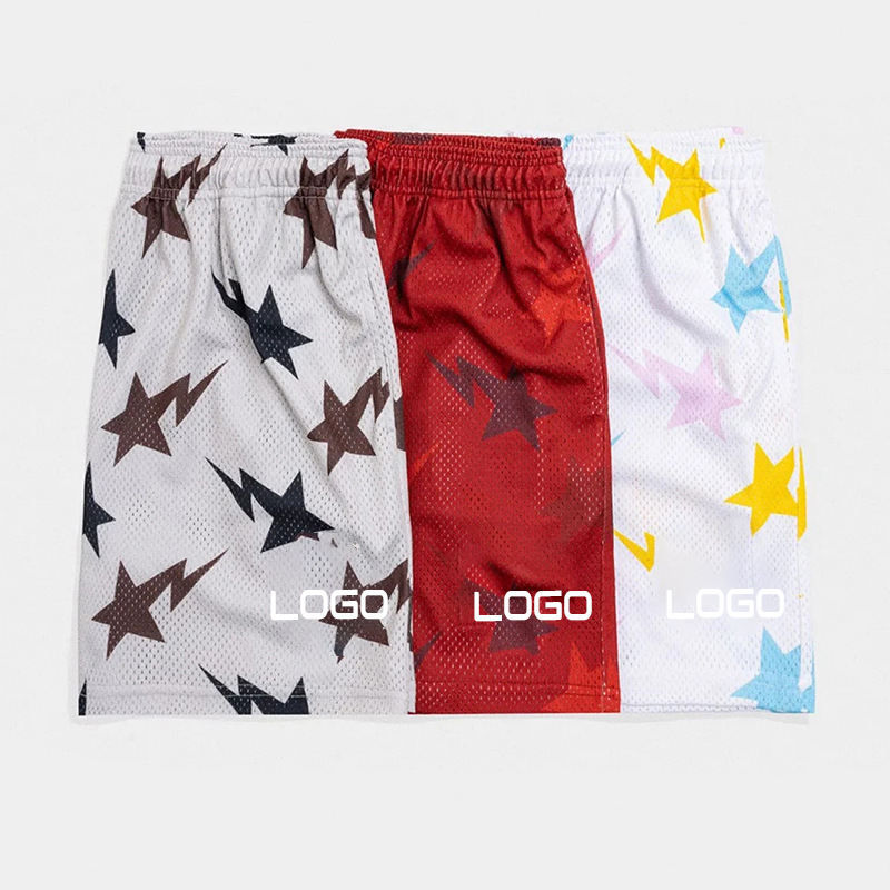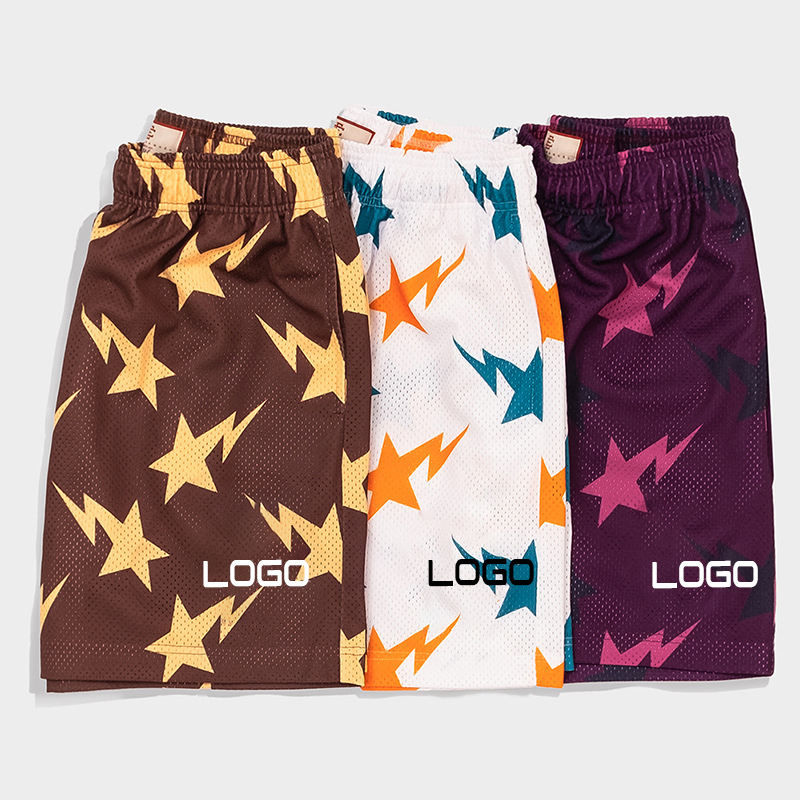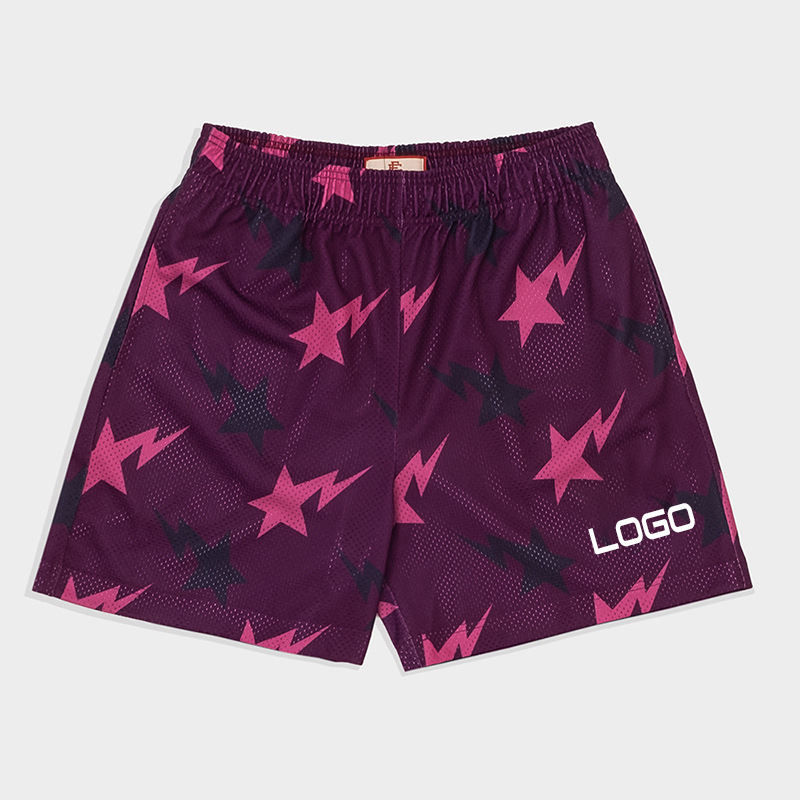 กางเกงขาสั้นสำหรับผู้ชายกางเกงขาสั้นของผู้ชายกางเกงวิ่งลายตาข่ายโพลีเอสเตอร์100% ออกแบบโลโก้ได้ตามต้องการ