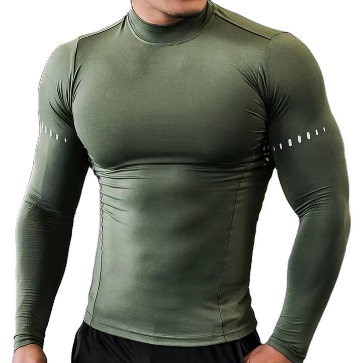 เสื้อรัดกล้ามเนื้อแขนยาวสำหรับผู้ชาย ขายส่ง แห้งเร็ว สกรีนโลโก้ได้ เหมาะสำหรับออกกำลังกาย วิ่ง และฝึกซ้อม