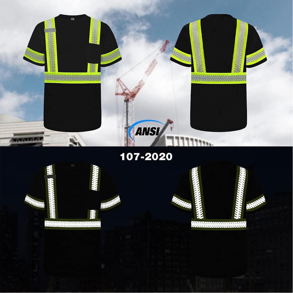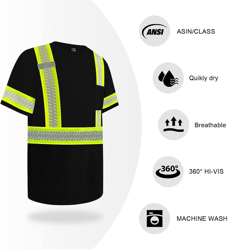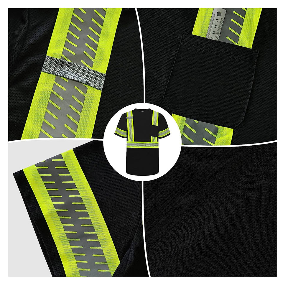เสื้อยืดคอกลมแขนสั้นสะท้อนแสงสำหรับผู้ชายขายส่ง เสื้อแถบสะท้อนแสงสำหรับงานก่อสร้าง