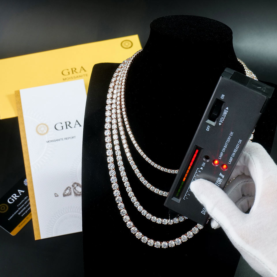 สร้อยคอเทนนิสเพชรโมซานไนต์ทรงเหลี่ยมเจียระไนแบบบริลเลียนท์เคลือบทองคำขาว 925 สำหรับผู้ชายสไตล์ฮิปฮอป ขายส่ง