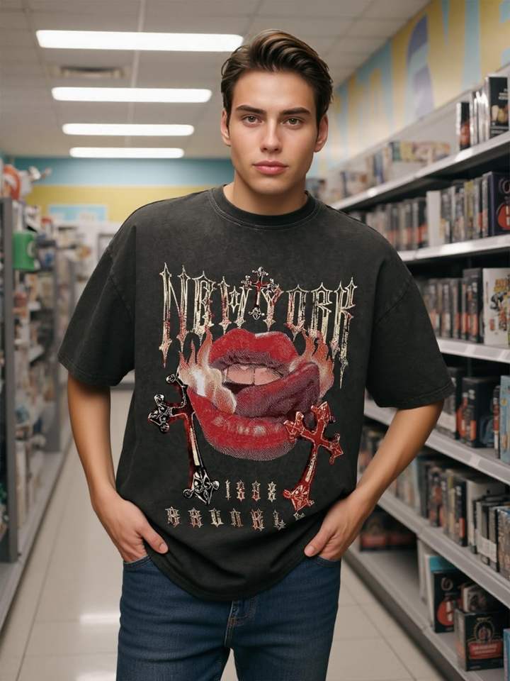 เสื้อยืดโอเวอร์ไซส์ผู้ชายแบบขายส่ง ผ้าคอตตอนหนานุ่มคุณภาพสูง คอทรงกลม แขนสั้น ล้างสีแบบ Stone Washed สไตล์สตรีทแวร์