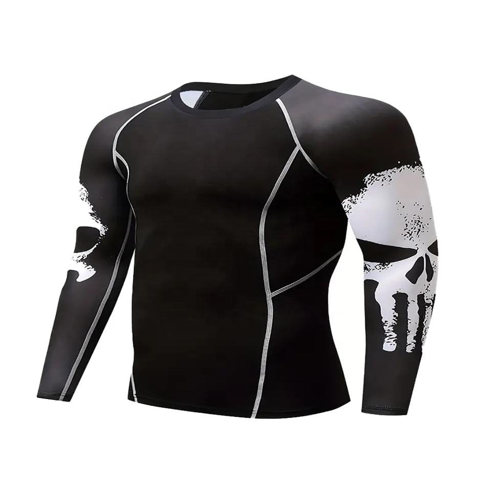 เสื้อรัดกล้ามเนื้อผู้ชายสำหรับ MMA ซับเหงื่อ แห้งเร็ว สำหรับออกกำลังกาย พิมพ์ลาย รุ่นพื้นฐาน เสื้อวิ่ง ชั้นในกันลม ขายส่ง