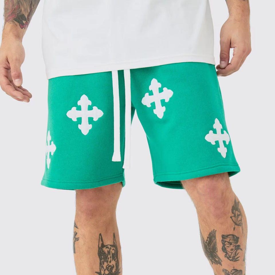 กางเกงขาสั้นผ้าคอตตอน40% สั้นสำหรับผู้ชายกางเกงปะติดแบบไขว้ยาวปานกลางทำจากโพลีเอสเตอร์ระบายอากาศได้ดีสไตล์สตรีทผลิตจากปากีสถาน