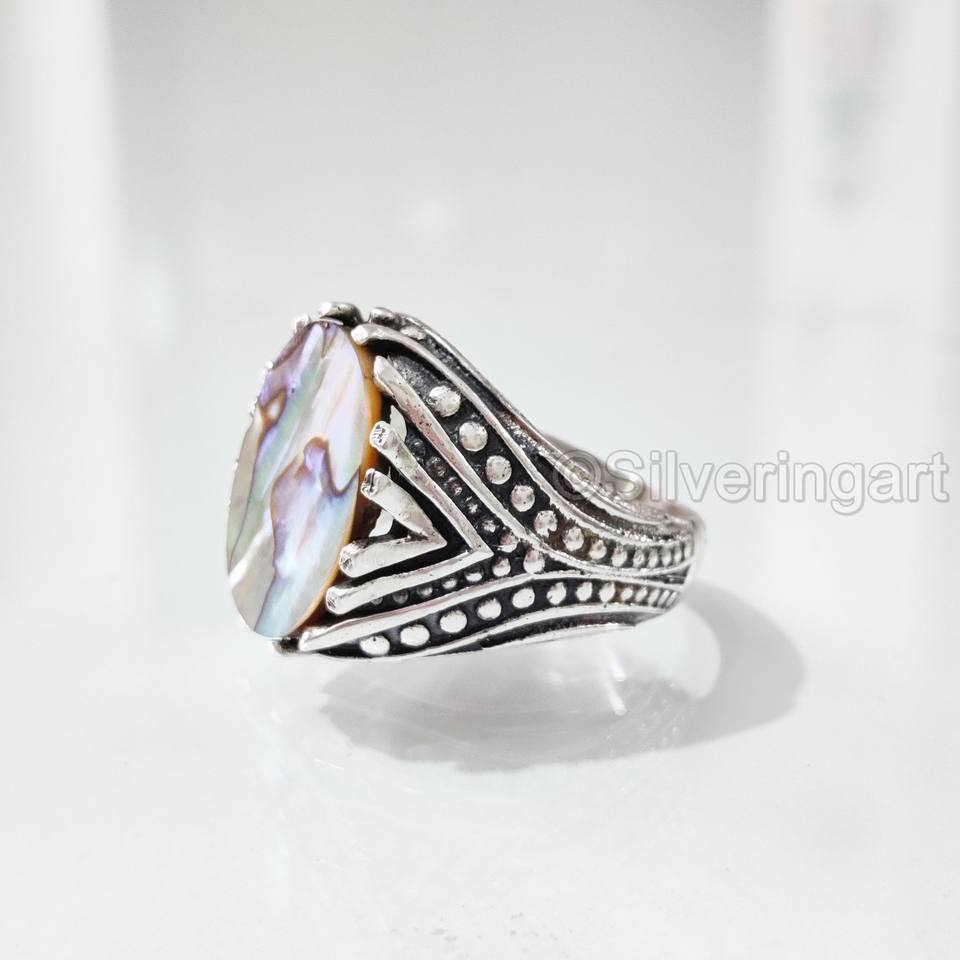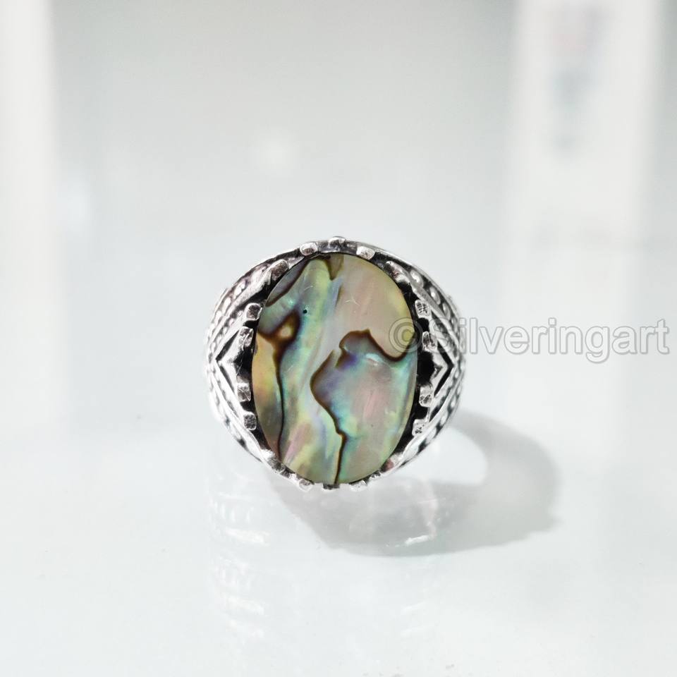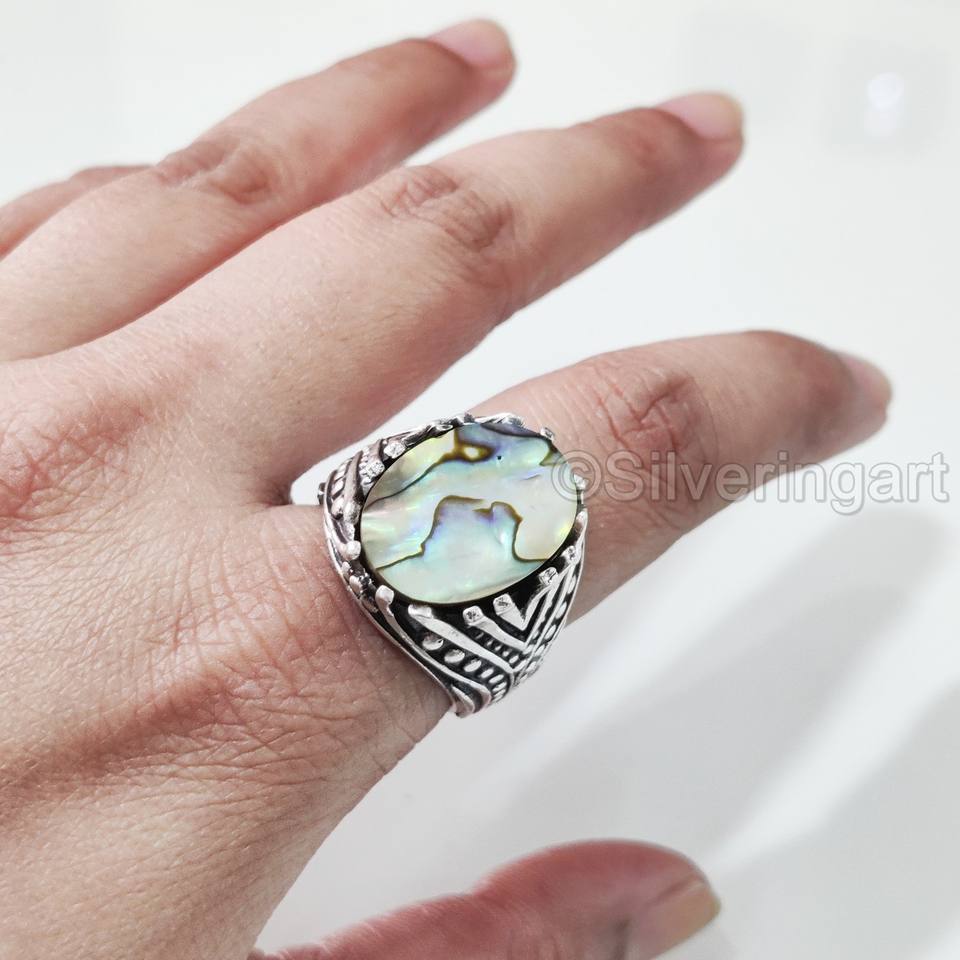 แหวนเงินแท้ 925 สำหรับผู้ชาย ประดับเปลือกหอยมุกอะบาโลนธรรมชาติ พร้อมพลอยประจำเดือนเกิด ทุกขนาด ของขวัญวันครบรอบแบบอาหรับ