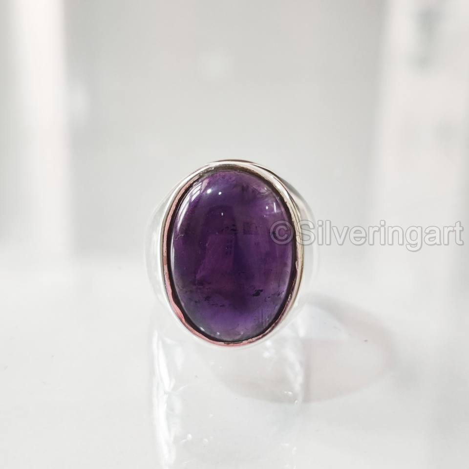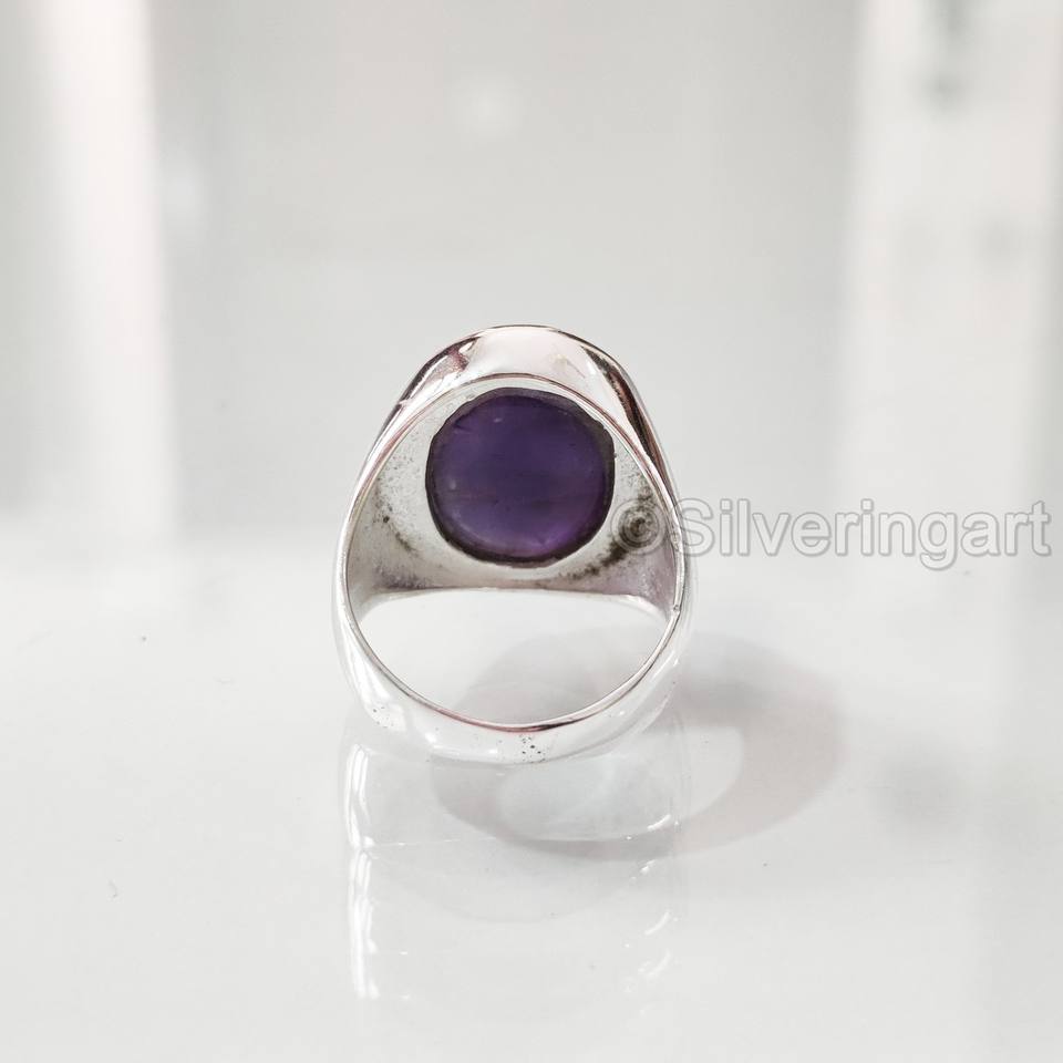 แหวนเงินแท้ 925 ประดับพลอยแอมะทิสต์ธรรมชาติ สำหรับผู้ชาย ขายส่ง ของขวัญแต่งงานแบบอาหรับ มีทุกขนาด ประจำเดือนกุมภาพันธ์