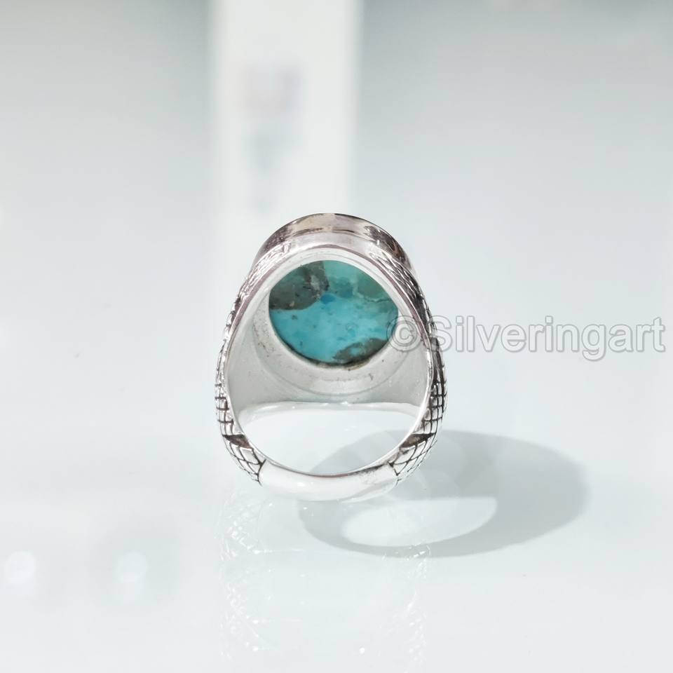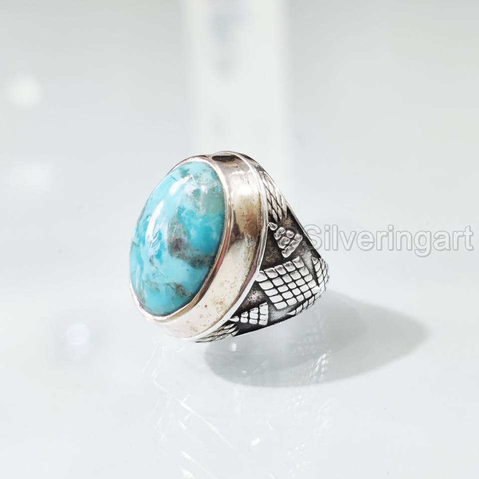 แหวนเงินแท้ 925 ประดับพลอยเทอร์ควอยซ์ธรรมชาติจากแอริโซนา สำหรับผู้ชาย ขายส่งทุกขนาด สไตล์อาหรับ วินเทจ เครื่องประดับคริสต์มาส