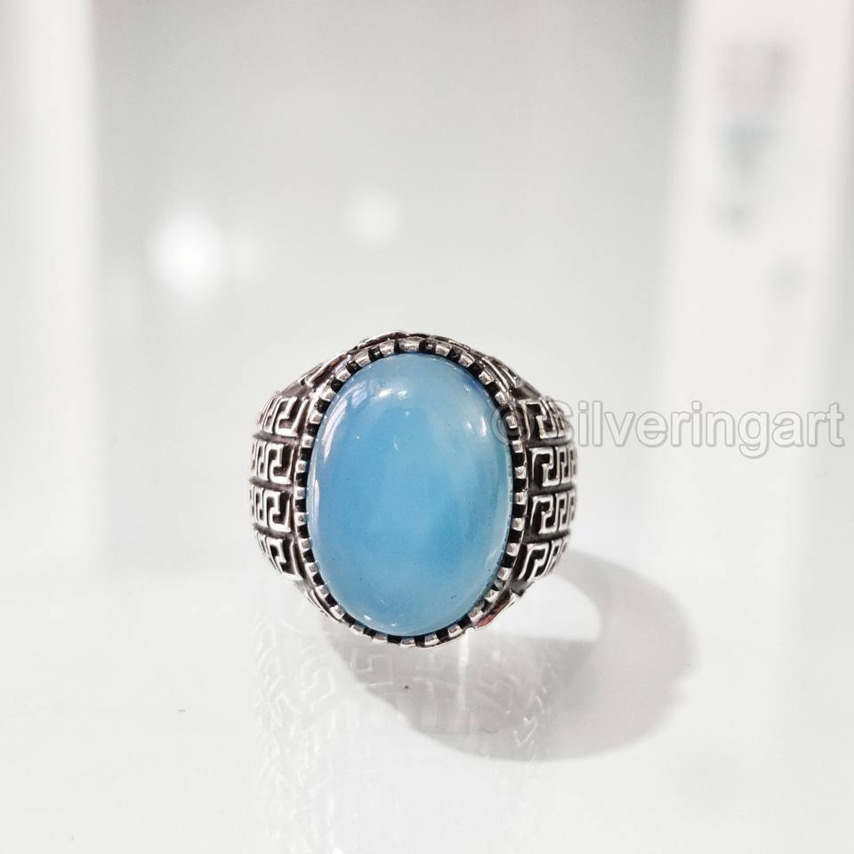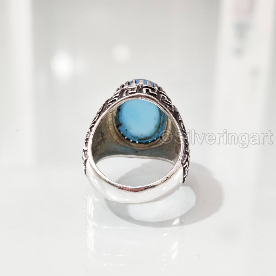 ขายส่งแหวนบุรุษทองแดงธรรมชาติสีฟ้าเทอร์ควอยซ์พลอย December แหวนพลอยอัญมณีอาหรับเครื่องประดับชั้นดี925แหวนเงินสเตอร์ลิง