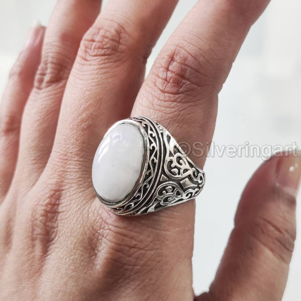 แหวนเงินแท้ 925 สำหรับผู้ชาย ขายส่ง แหวนพลอยมูนสโตนสีน้ำเงินธรรมชาติ ประกายไฟรุ้ง หินประจำเดือนเกิดเดือนมิถุนายน เครื่องประดับสไตล์อาหรับตะวันออก