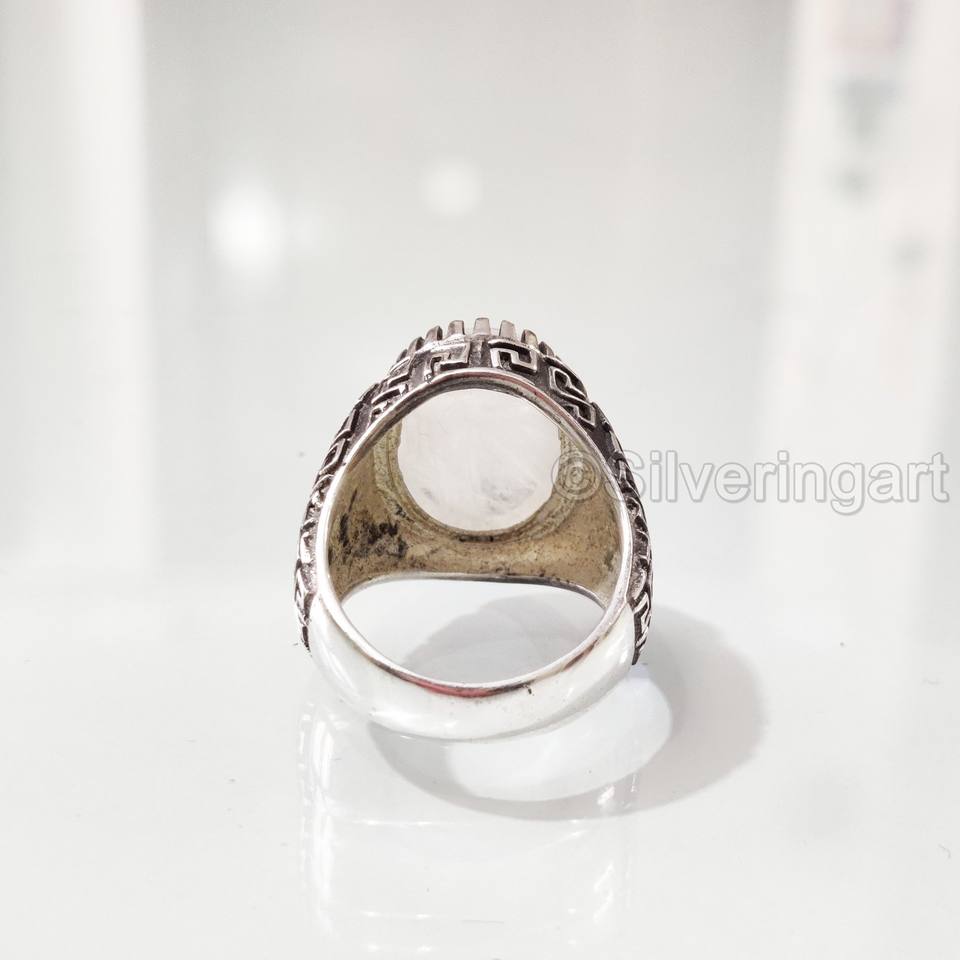ขายส่งแหวนผู้ชายสีฟ้าธรรมชาติสีฟ้าไฟรุ้งหินอัญมณีพลอยอัญมณีเครื่องประดับตะวันออกอาหรับ925แหวนเงินสเตอร์ลิง