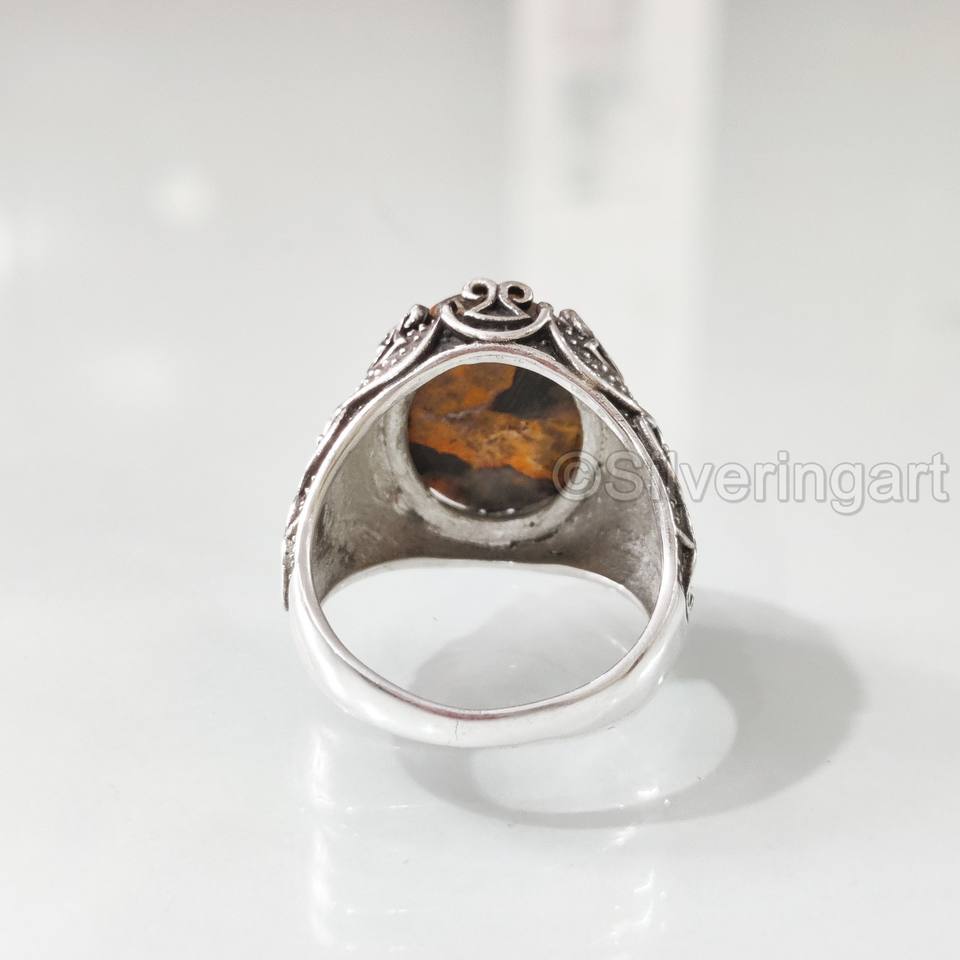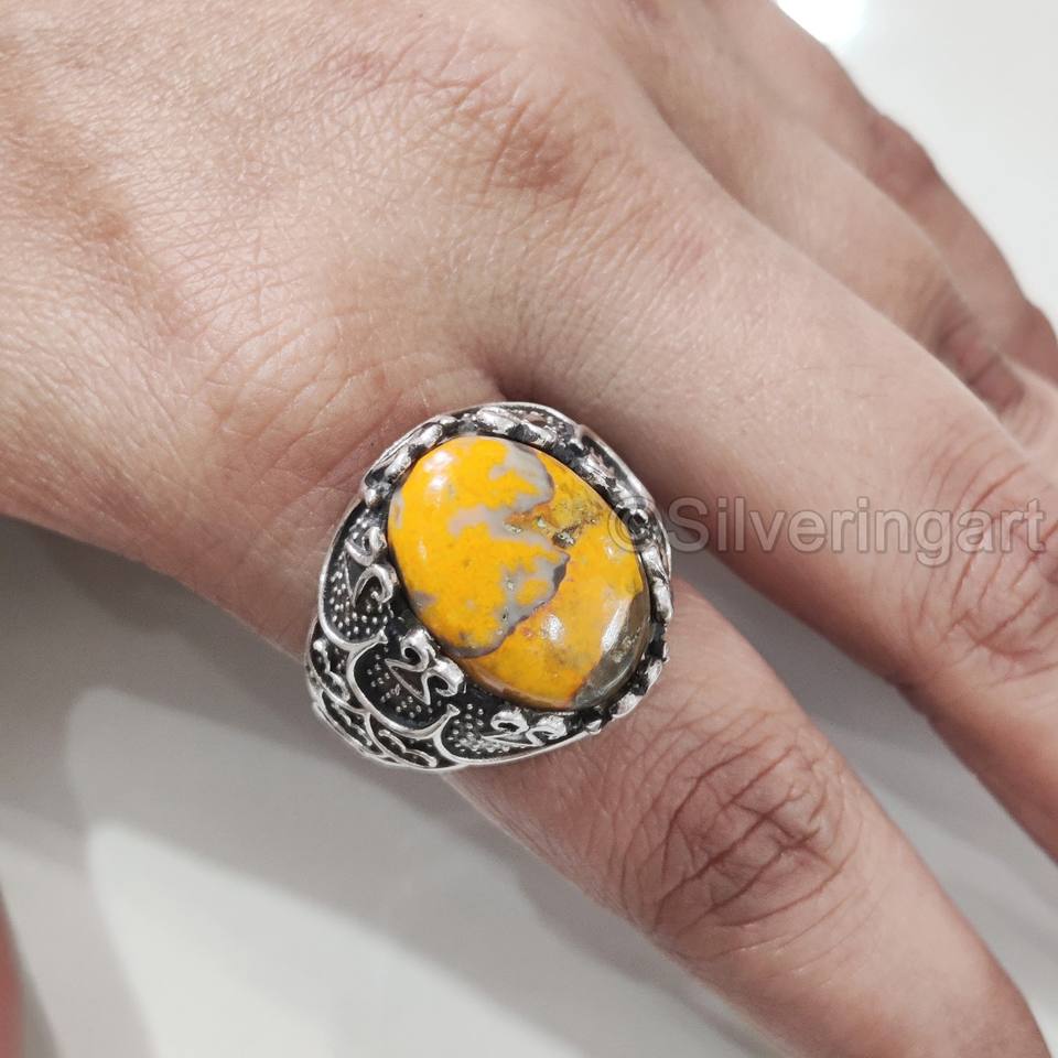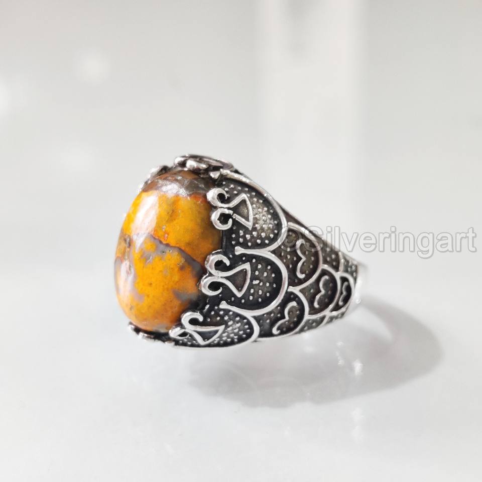 ขายส่งแหวนผู้ชาย Bumble Bee ธรรมชาติ Jasper หินอัญมณีทุกขนาดเครื่องประดับอาหรับตะวันออก925แหวนเงินสเตอริง