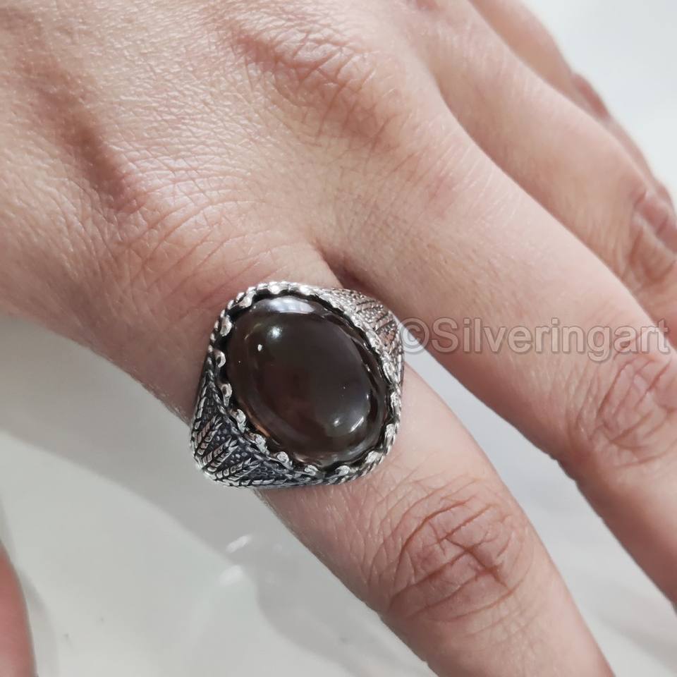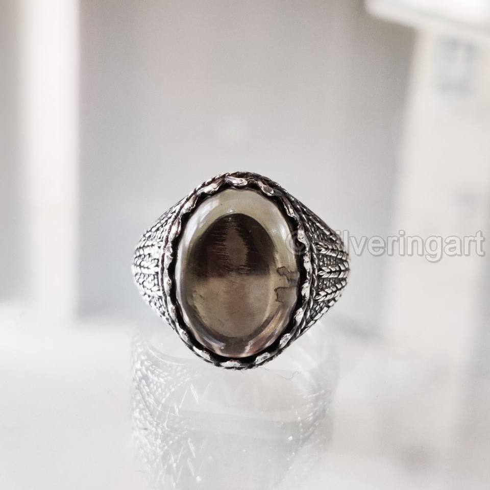 ขายส่งแหวนผู้ชายธรรมชาติสโมควอตซ์อัญมณี April แหวน birthstone ทุกขนาดเครื่องประดับงานแต่งงานหนัก925แหวนเงินสเตอร์ลิง