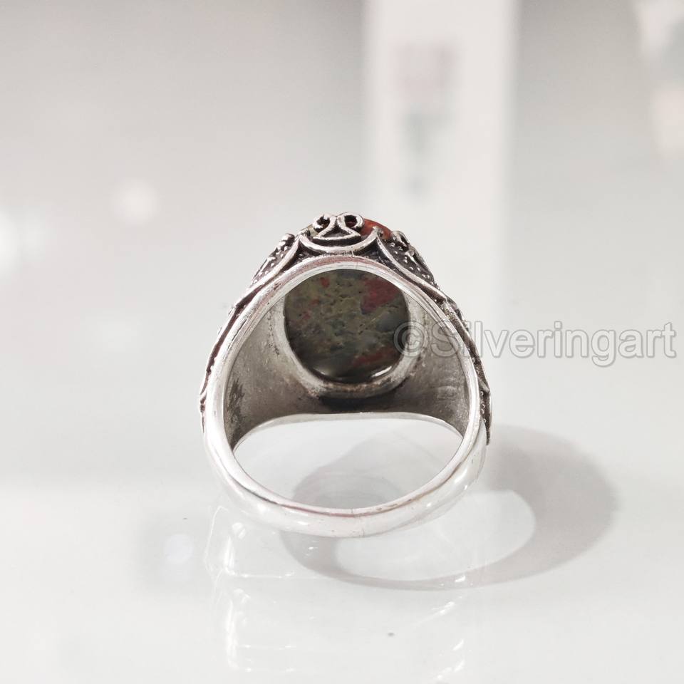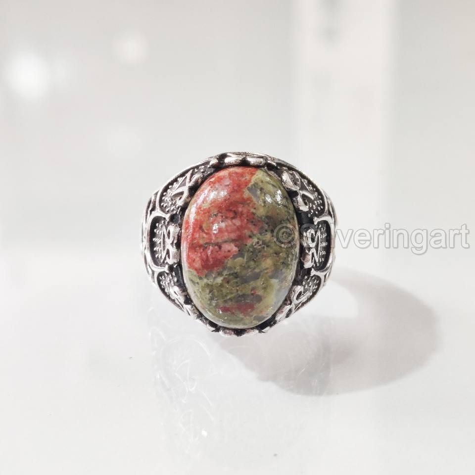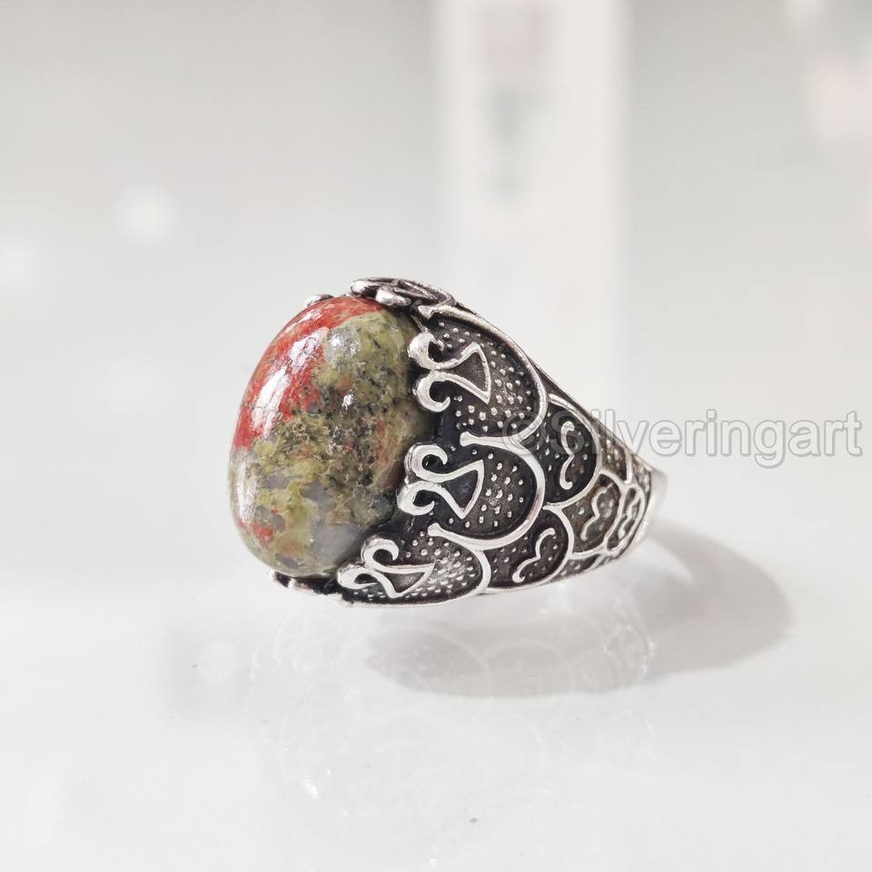 ขายส่งแหวนผู้ชายธรรมชาติ unakite Jasper พลอย birthstone ทุกขนาดเครื่องประดับคริสต์มาสออตโตมัน925แหวนเงินสเตอริง
