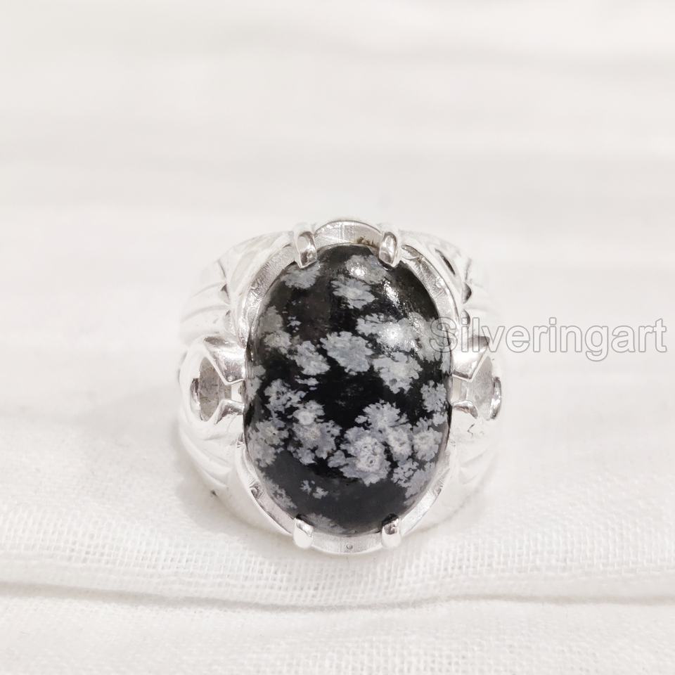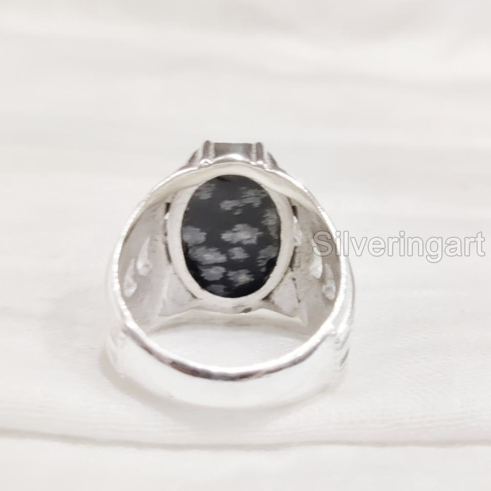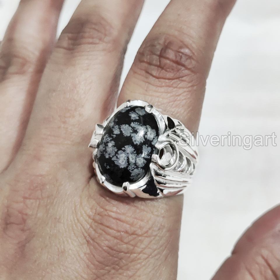 ขายส่งบุรุษแหวนมาใหม่เกล็ดหิมะธรรมชาติObsidianอัญมณีการออกแบบภาษาอาหรับFineงานแต่งงานเครื่องประดับแหวนเงิน 925