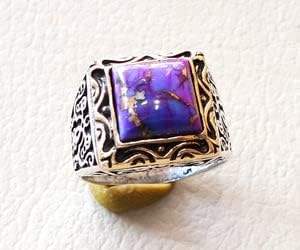 แหวนผู้ชายขายส่ง แหวนเงินแท้ 925 ประดับพลอยเทอร์ควอยซ์สีม่วงธรรมชาติจากตุรกี แหวนตราประทับผู้ชาย ดีไซน์ใหม่