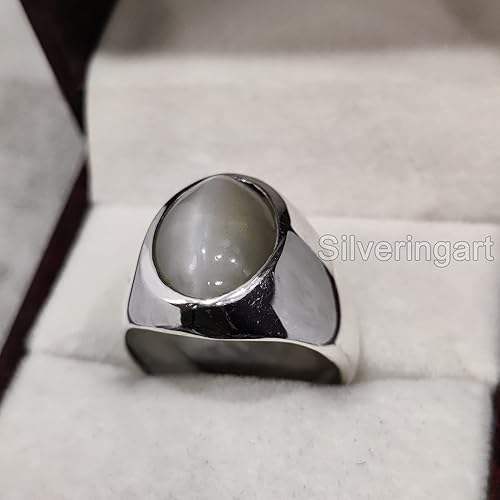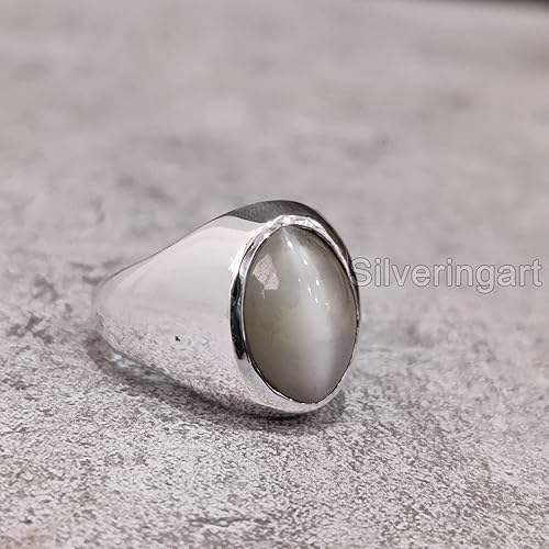แหวนเงินแท้ 925 สำหรับผู้ชาย ขายส่ง แหวนพลอยมูนสโตนสีเทาธรรมชาติ ของขวัญวันเกิด/วันครบรอบเดือนมิถุนายน